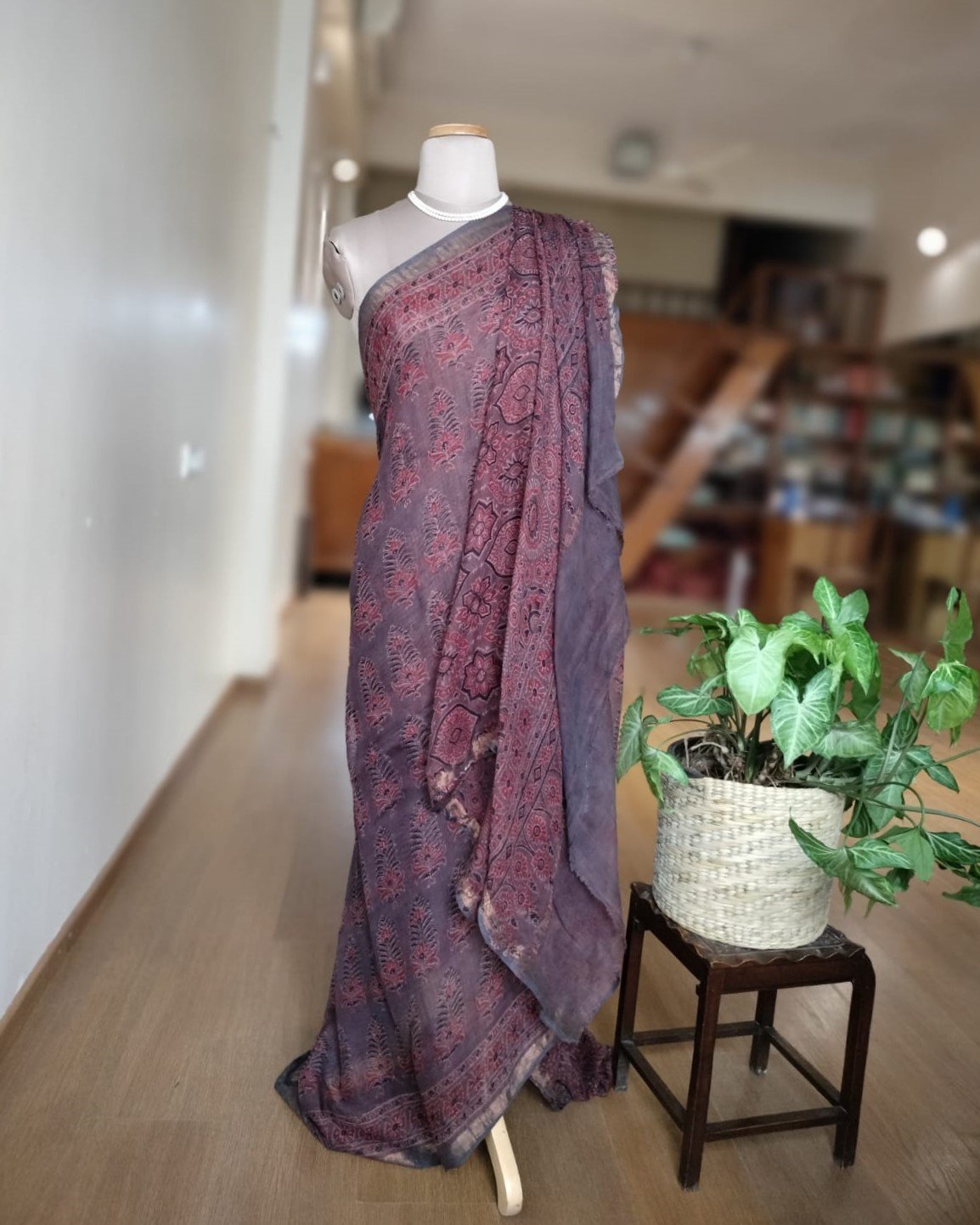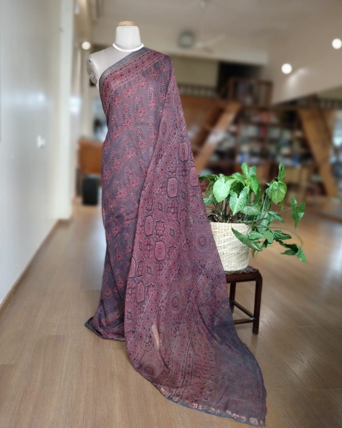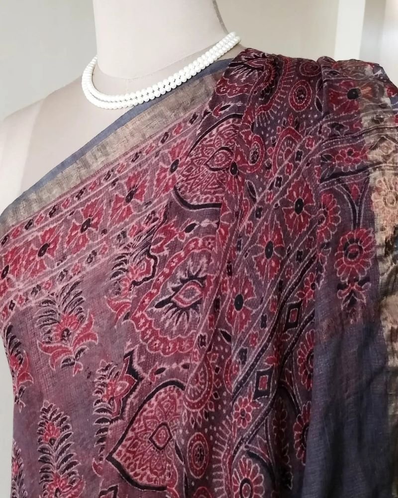 It’s a gorgeous weave with really lovely Ajrakh. Ideal for both summer and monsoons. Handwash separately in cold water.