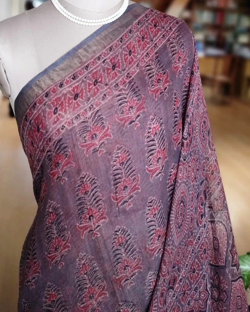 Barmer Ajrakh in Natural Dyes on Kota Doria Cotton Saree