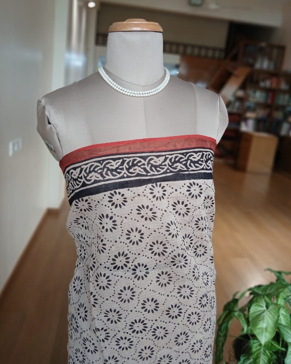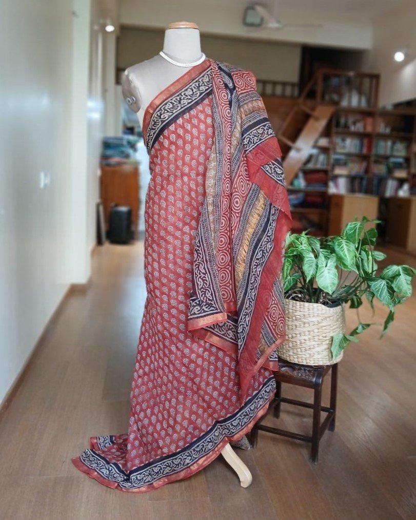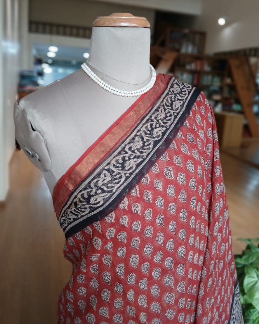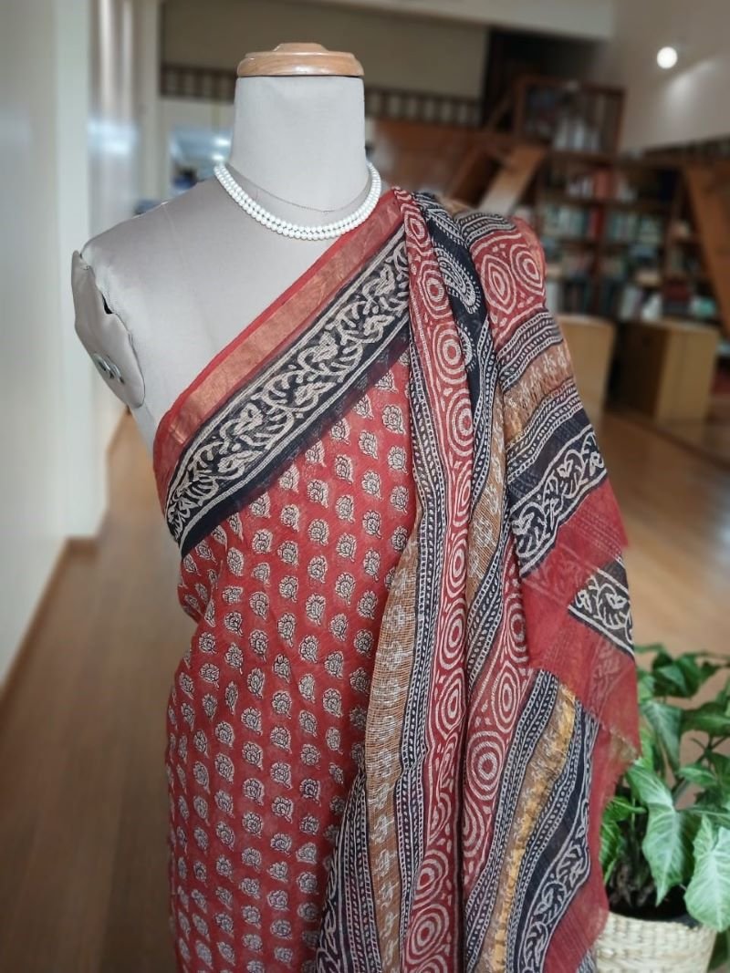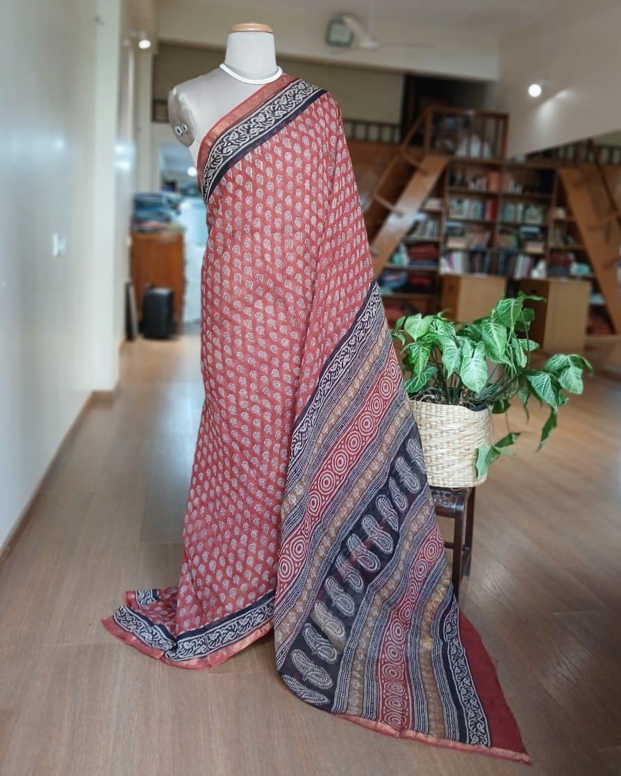 Care Instruction: Dry Clean or Hand wash in mild detergent and dry in shade. You can starch the saree if you like to wear it crisp. The blouse will need lining.