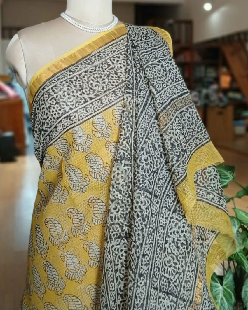 Care Instruction: Dry Clean or Hand wash in mild detergent and dry in shade. You can starch the saree if you like to wear it crisp. The blouse will need lining.