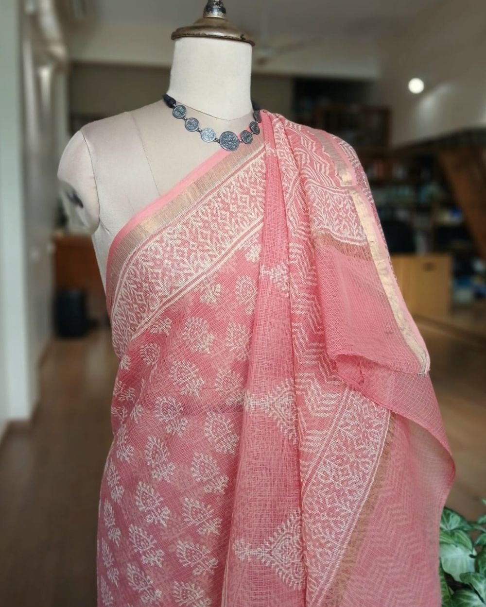Care Instruction: Dry Clean or Hand wash in mild detergent and dry in shade. You can starch the saree if you like to wear it crisp.