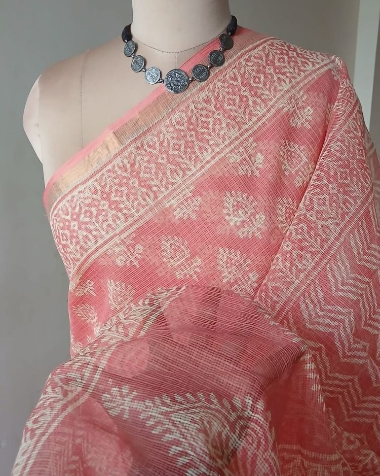 Saree length is 5.27 meters with printed blousepiece – 90cm and Height is 43 inches.