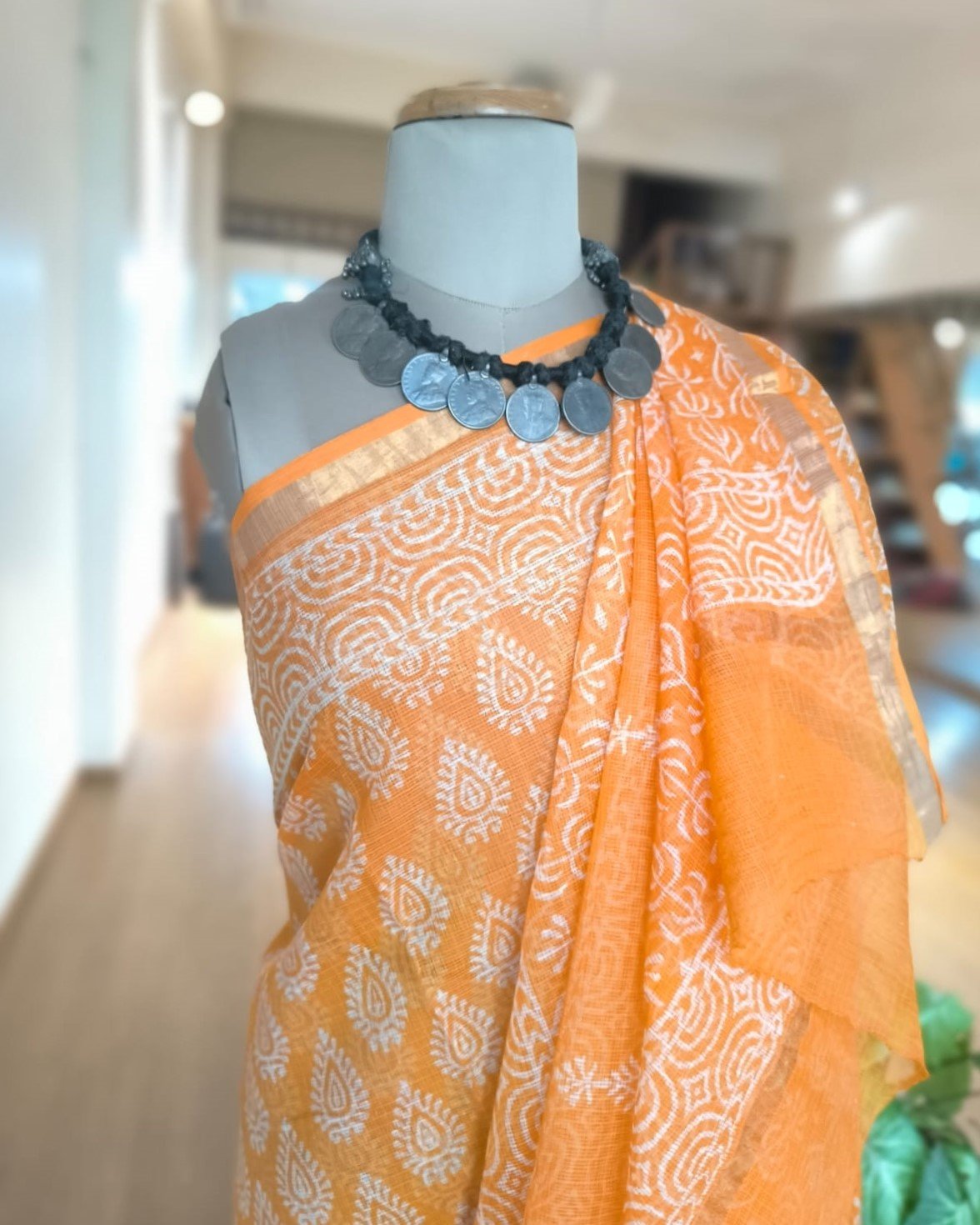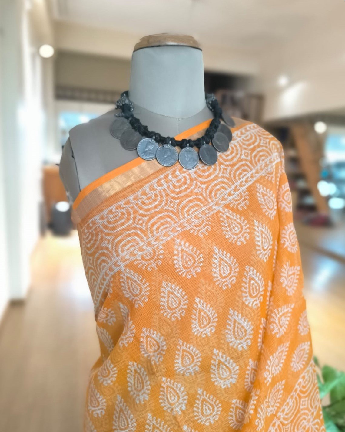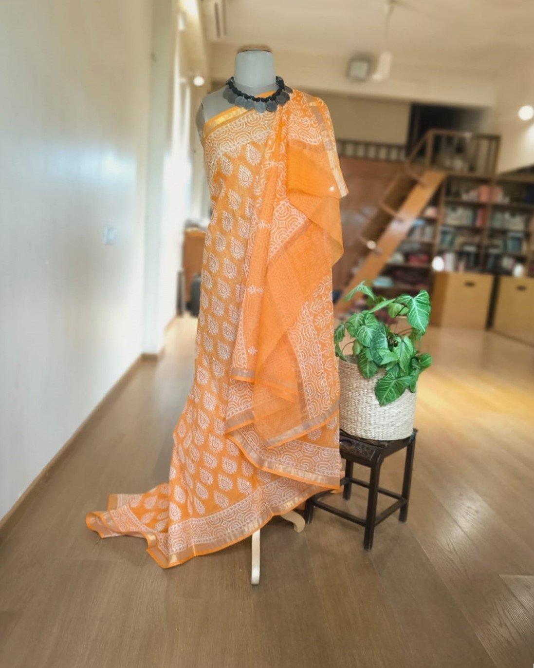 Care Instruction: Dry Clean or Hand wash in mild detergent and dry in shade. You can starch the saree if you like to wear it crisp. The blouse will need lining.