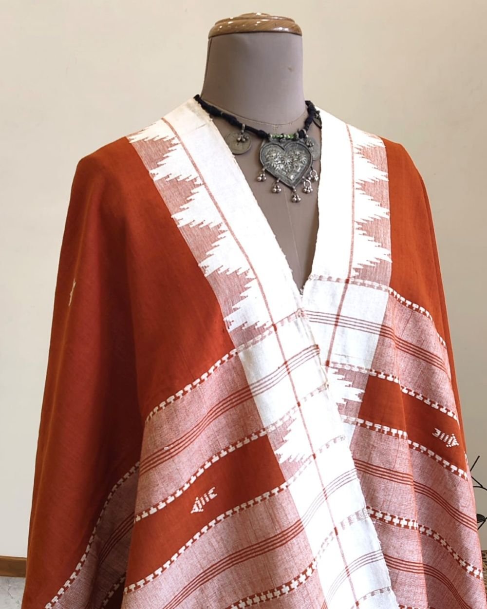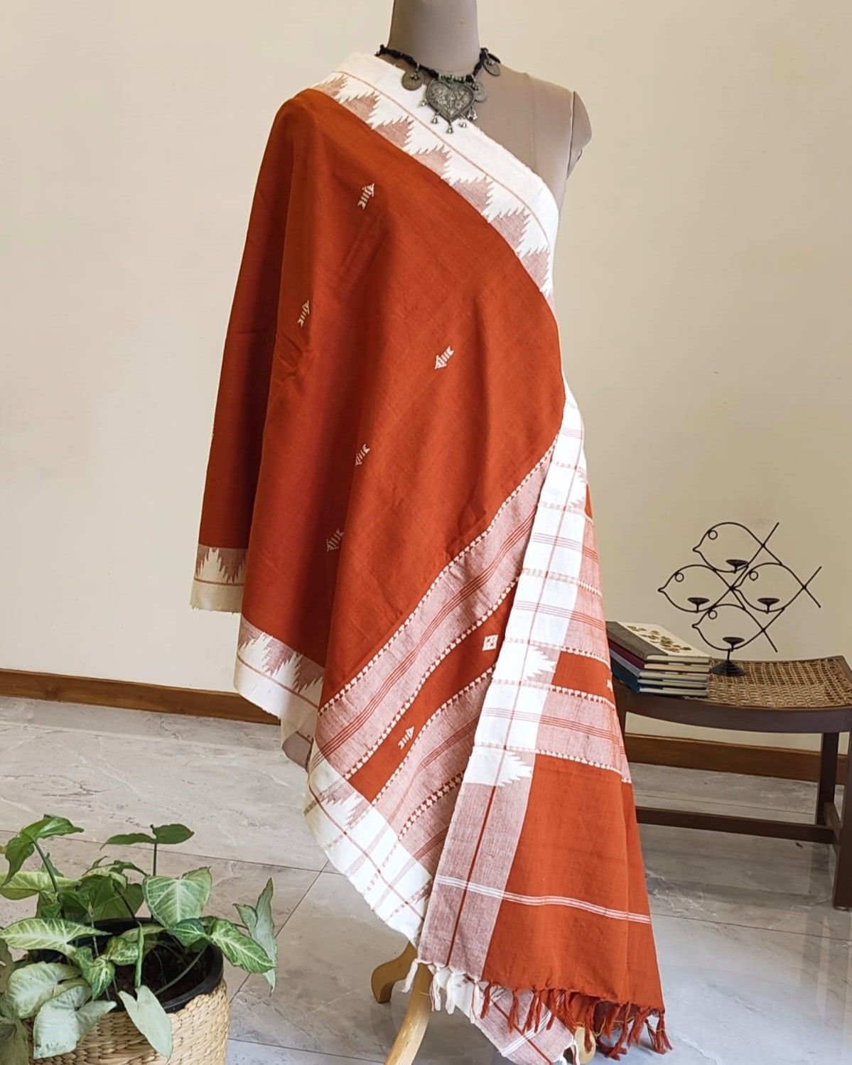 Kotpad handweave Cotton Dupatta from Koraput in Odisha with traditional motifs. See more details below.