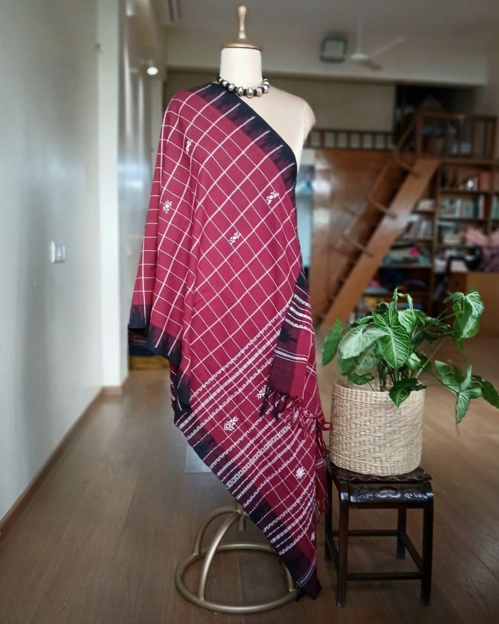 Kotpad handweave Cotton Dupatta from Koraput in Odisha. It’s a 2-coloured dupatta with a contrast border. Natural dyes have been used.