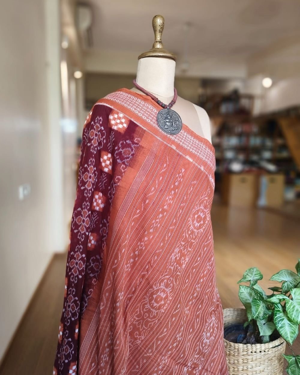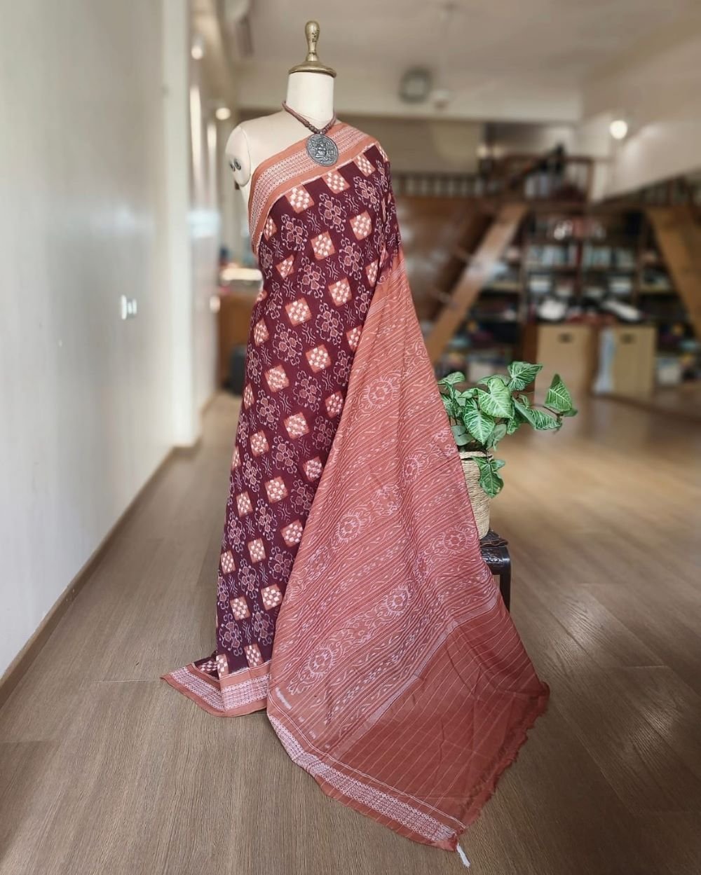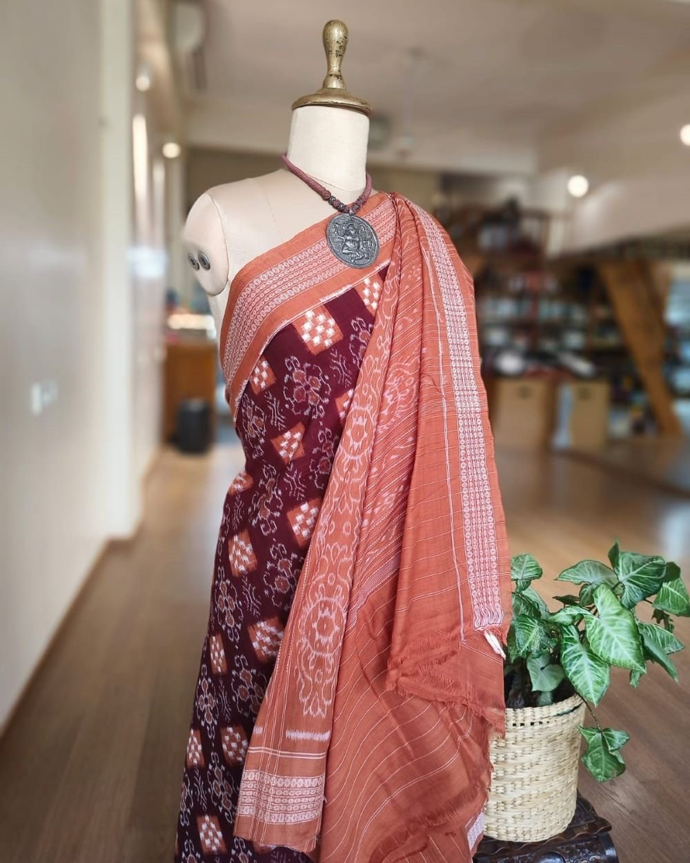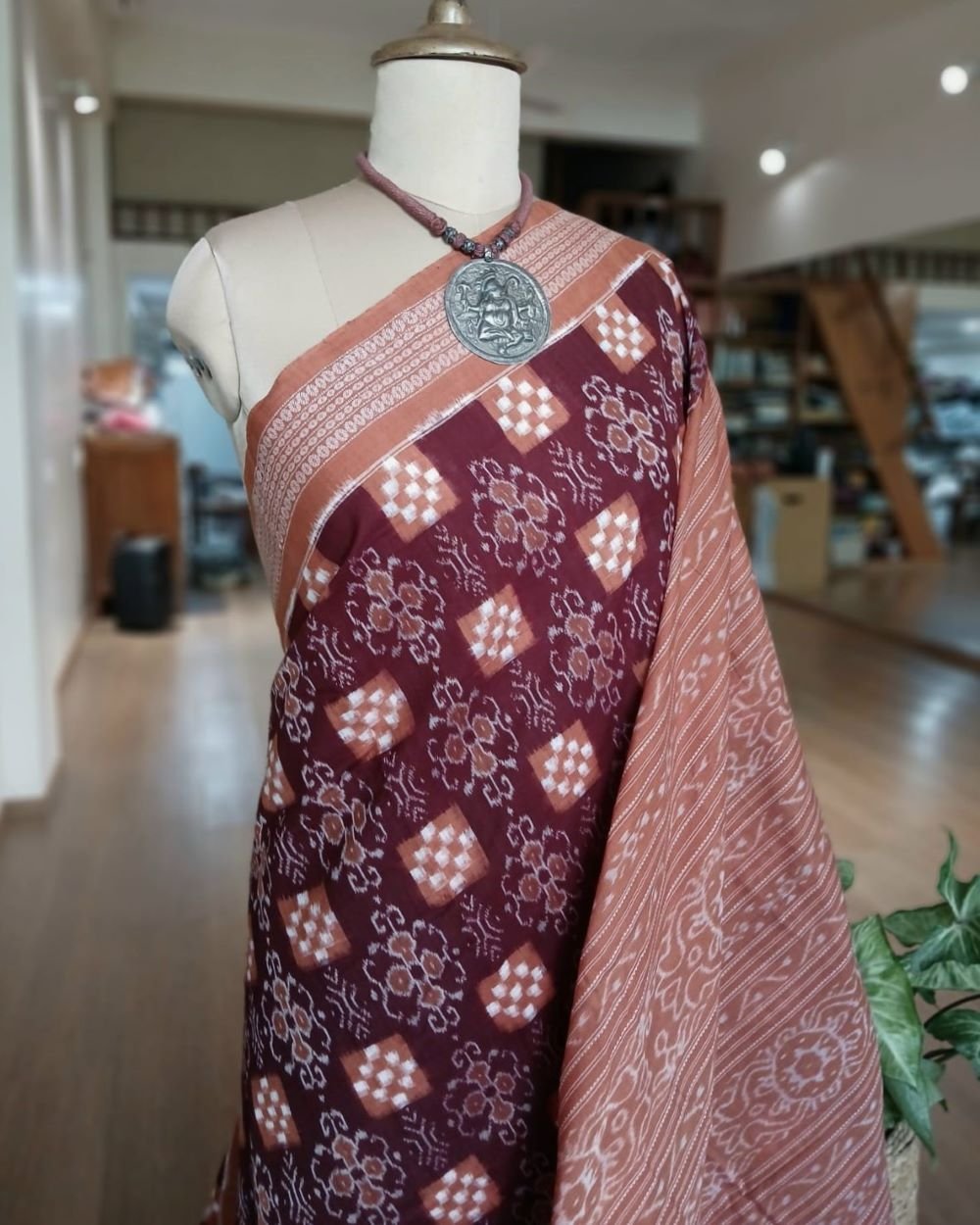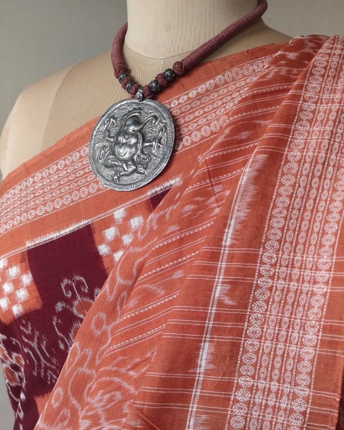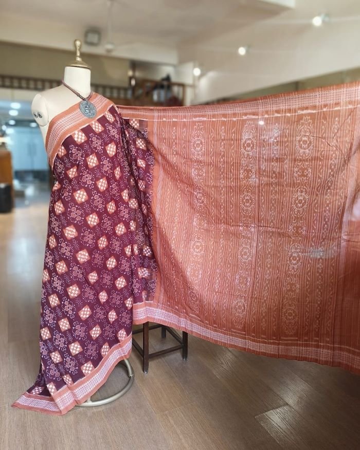 Kumbha and Pasapalli Double Ikat Sambalpuri cotton saree with excellent bandha work.