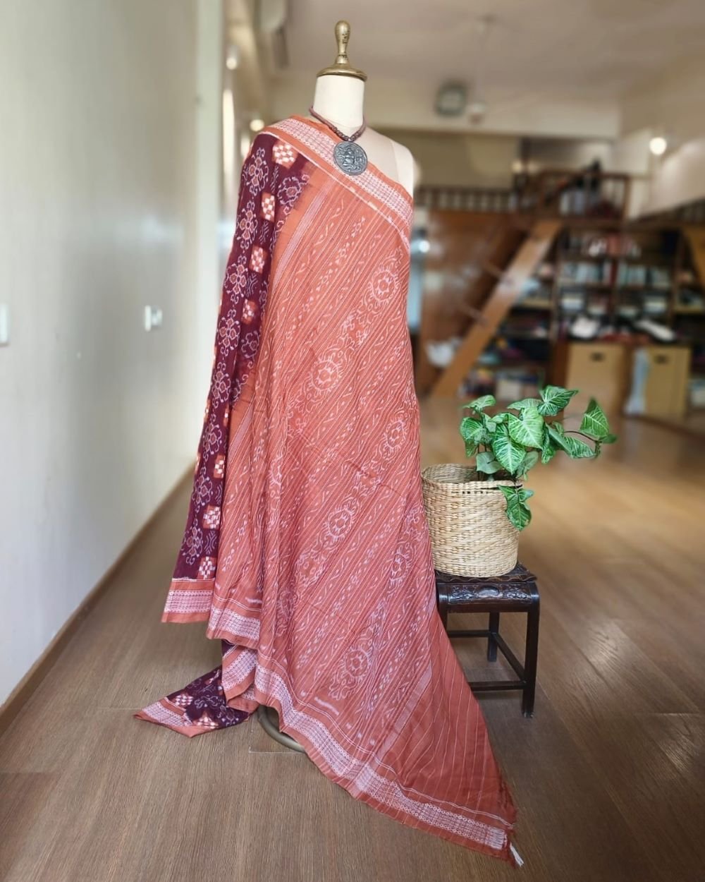 The palla also has fine curvilinear ikat designs.