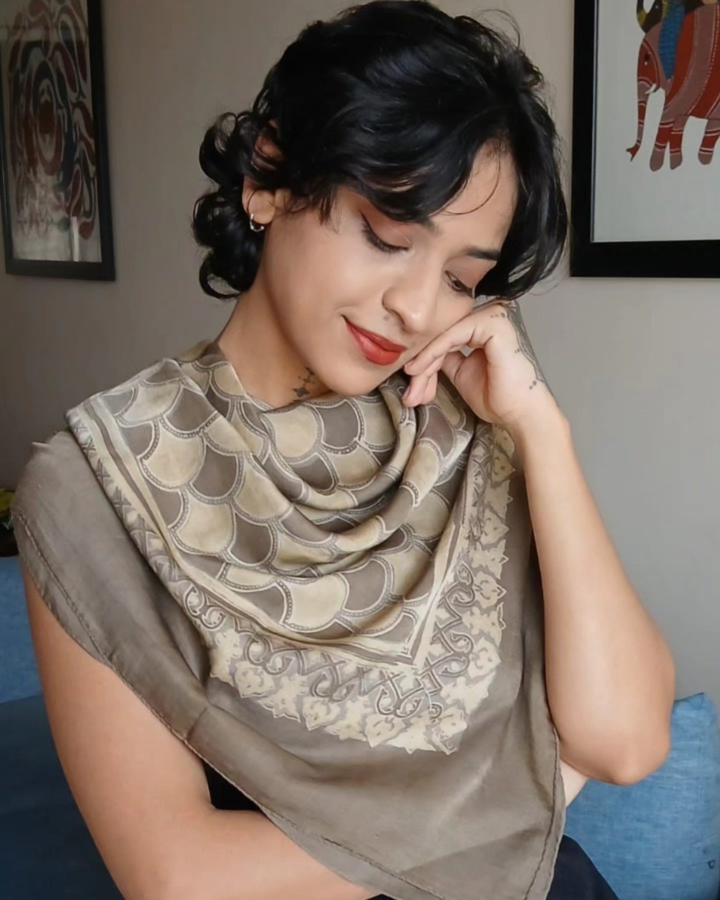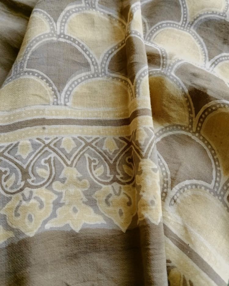 The material is modal silk and the scarf has been hand printed in Ajrakhpur.