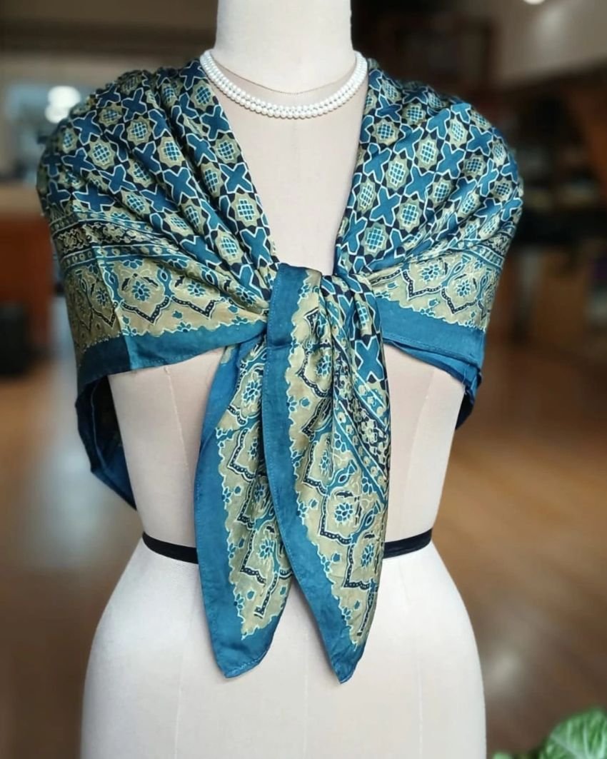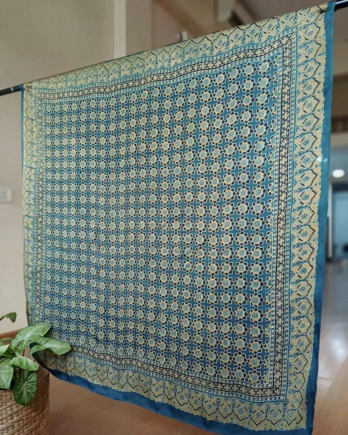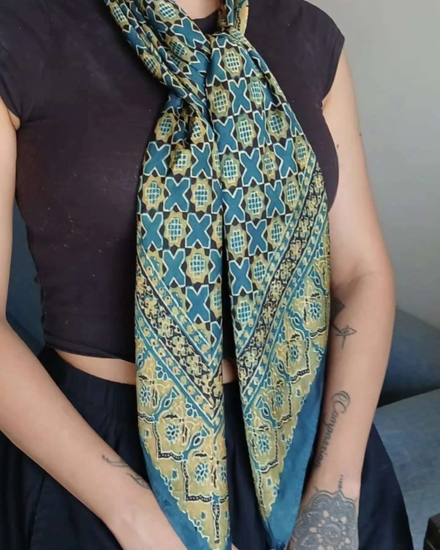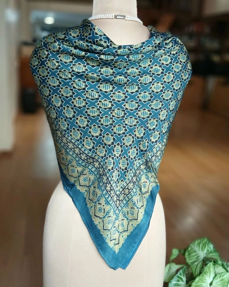 Large square scarf in Ajrakh Natural Dyes.