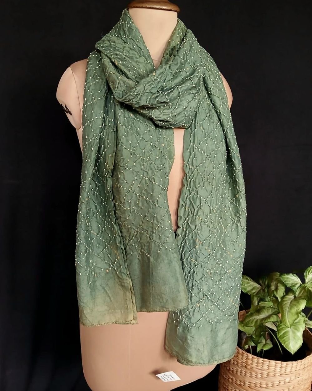 Luxurious Silk Dupatta/Shawl with very fine bandhani work