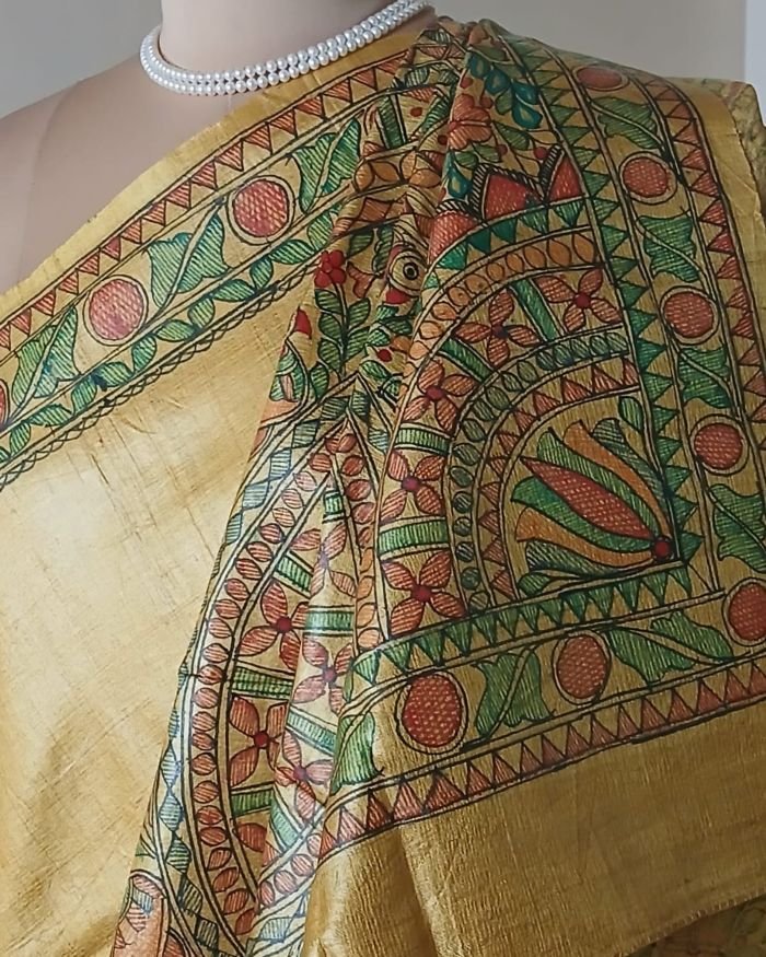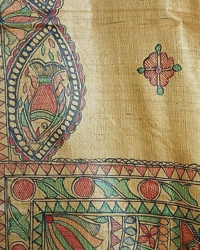 Handpainted Saree, Madhubani Saree, Silk Saree, Tussar Silk Saree