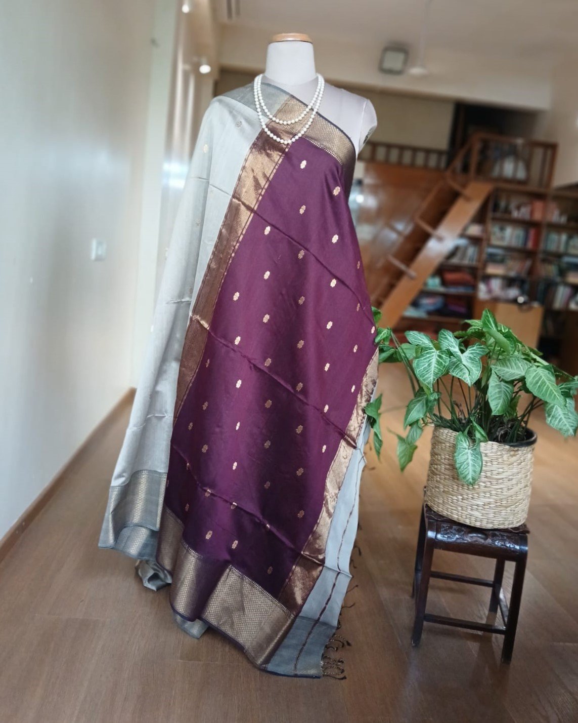 From the land of the Holkars, the famous Maheshwari saree in silk cotton. Great for all festive occasions and celebrations.