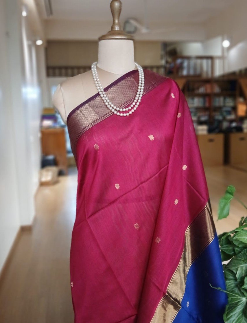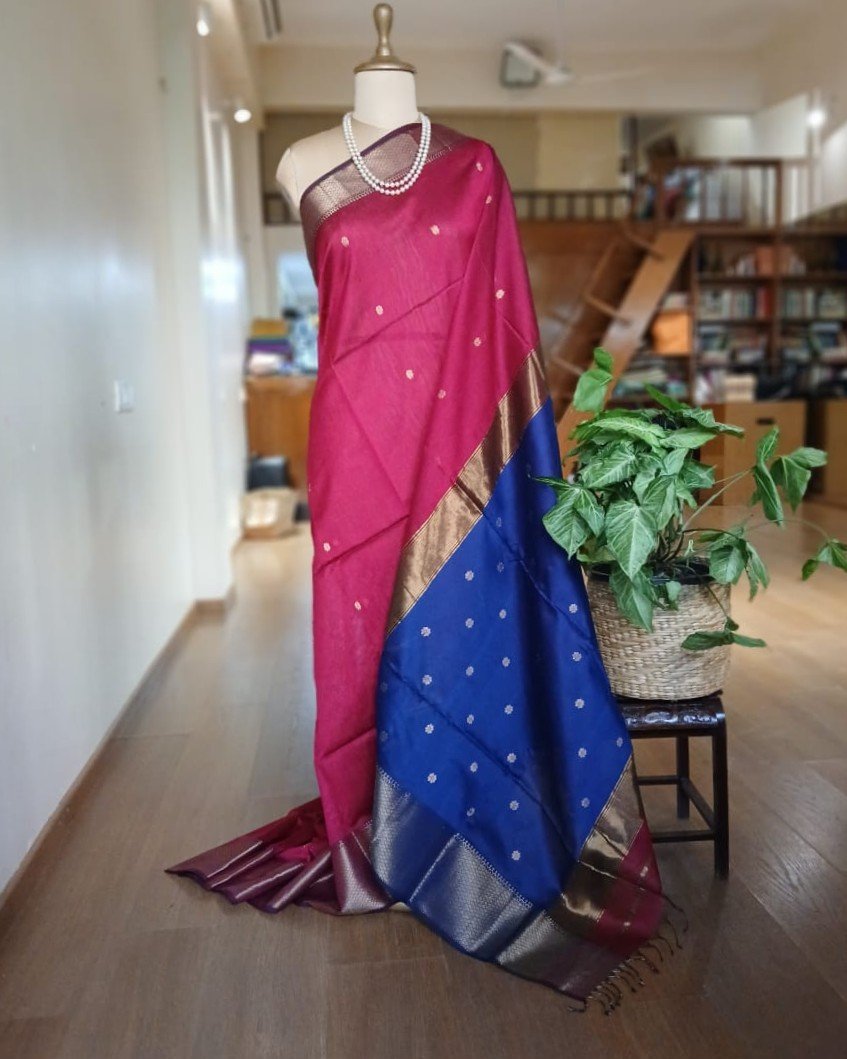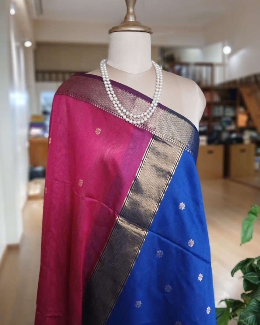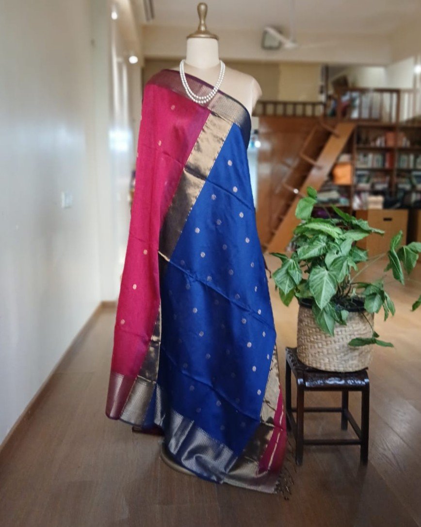 Maheshwari saree in silk cotton from the town of Maheshwar in Madhya Pradesh.
