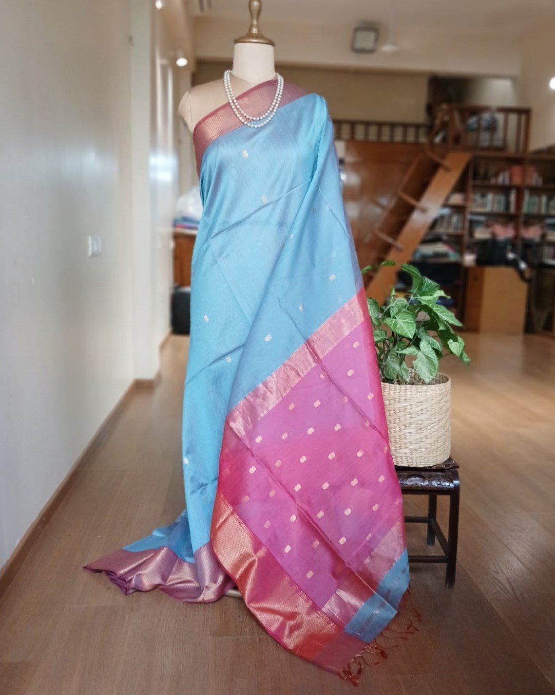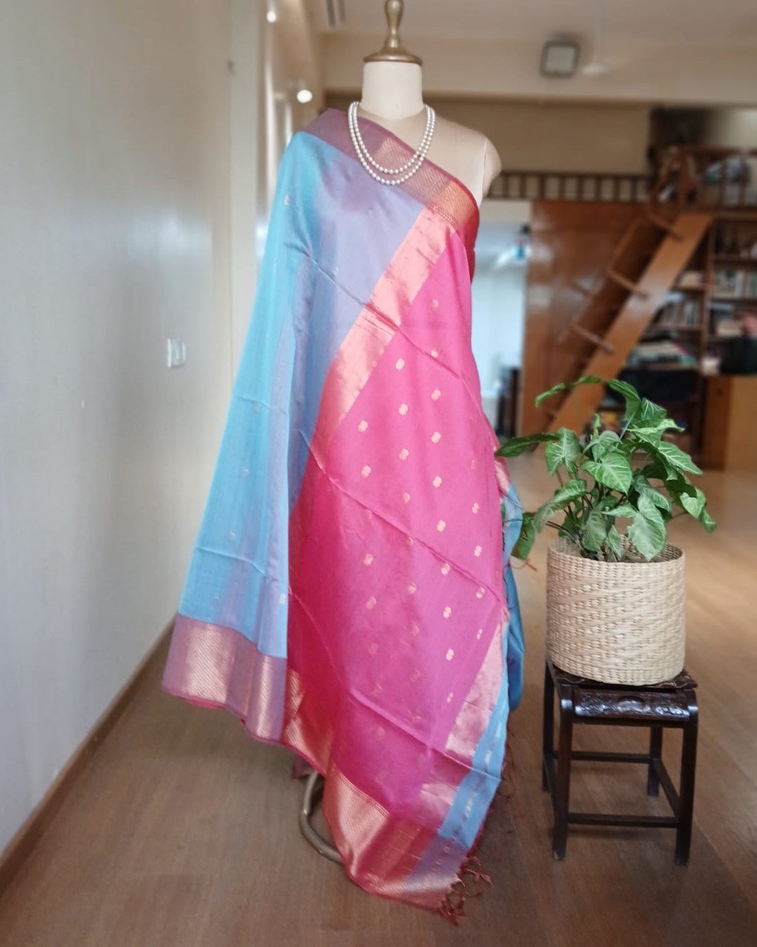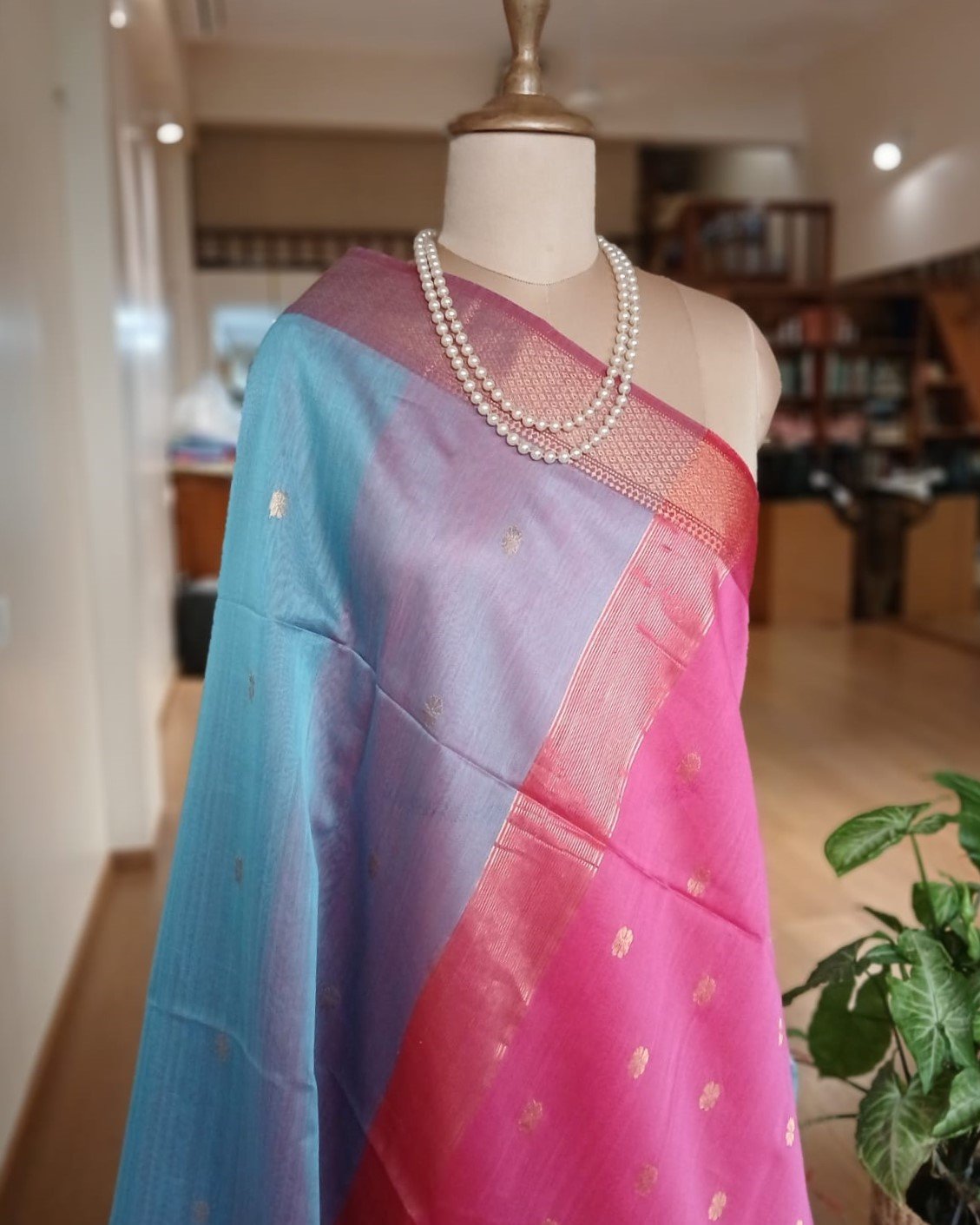 Maheshwari saree in silk cotton from the town of Maheshwar in Madhya Pradesh.