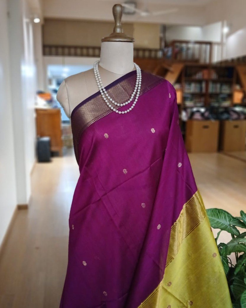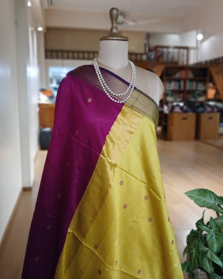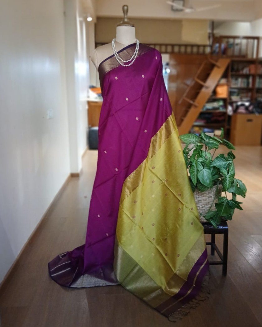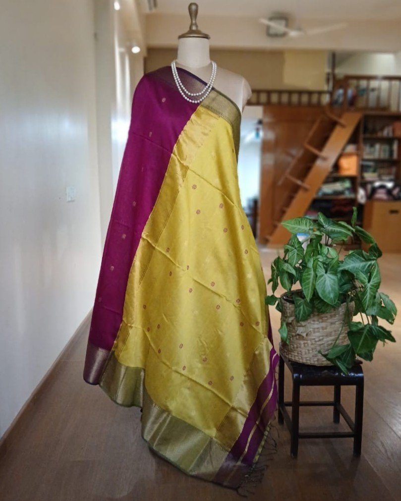 Maheshwari saree in silk cotton from the town of Maheshwar in Madhya Pradesh.