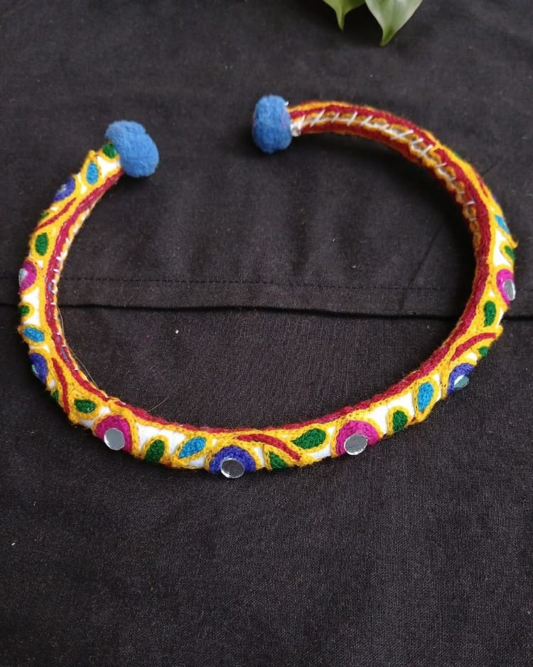 Colourful Meghwal embroidered hasli (choker) from Kutch, with mirrorwork. Free size.