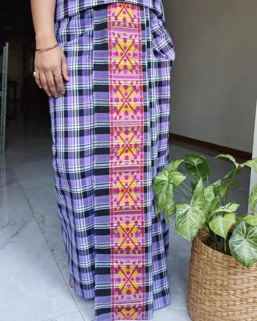 The mekhela or skirt is 2.3 meters x 36 inches