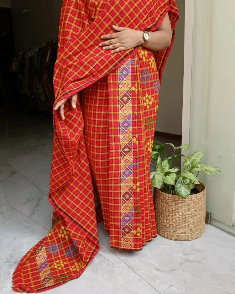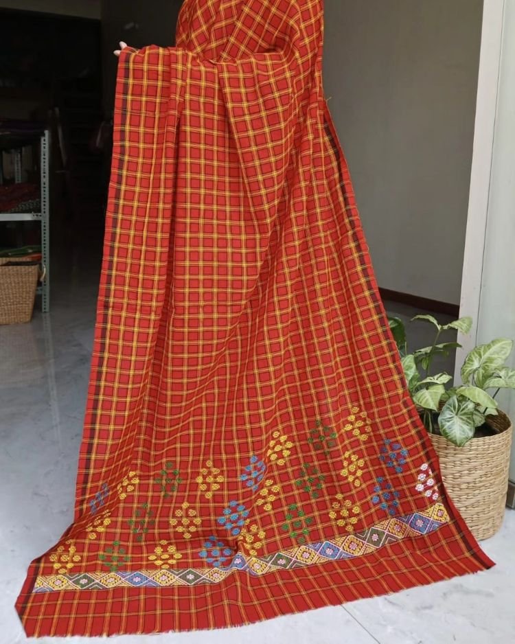 From Majuli Island in Assam, a collection of Mekhela Chadors in cotton with Mishing motifs.
