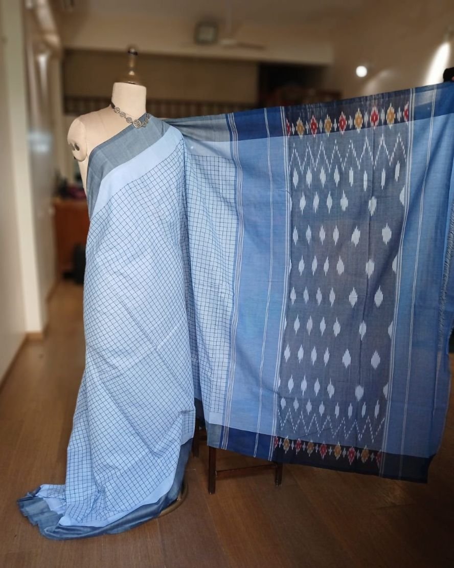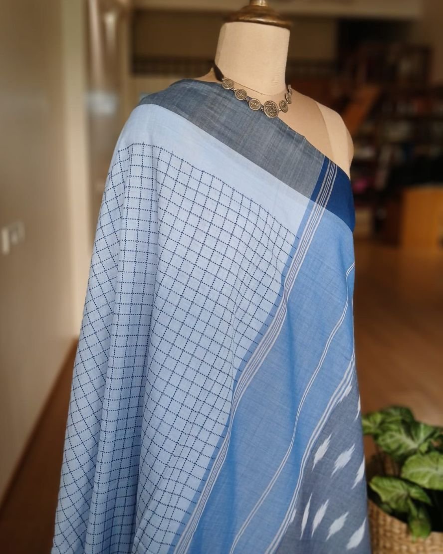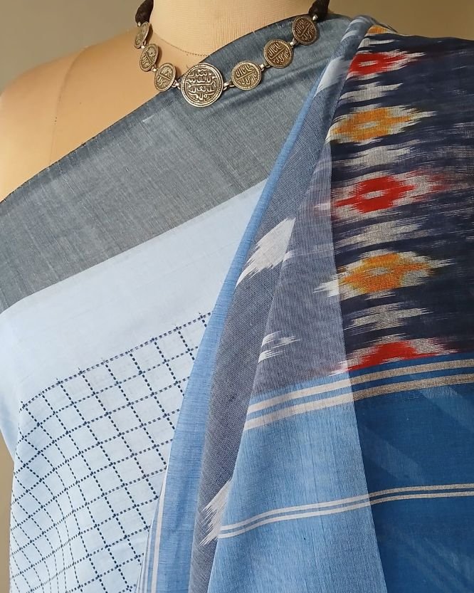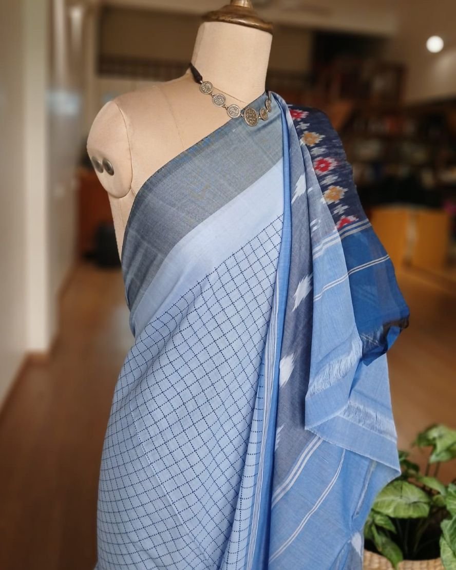 Combined with ikat tie-dye patterns in body, border and palla, it is an attractive pocket-friendly option for day wear.