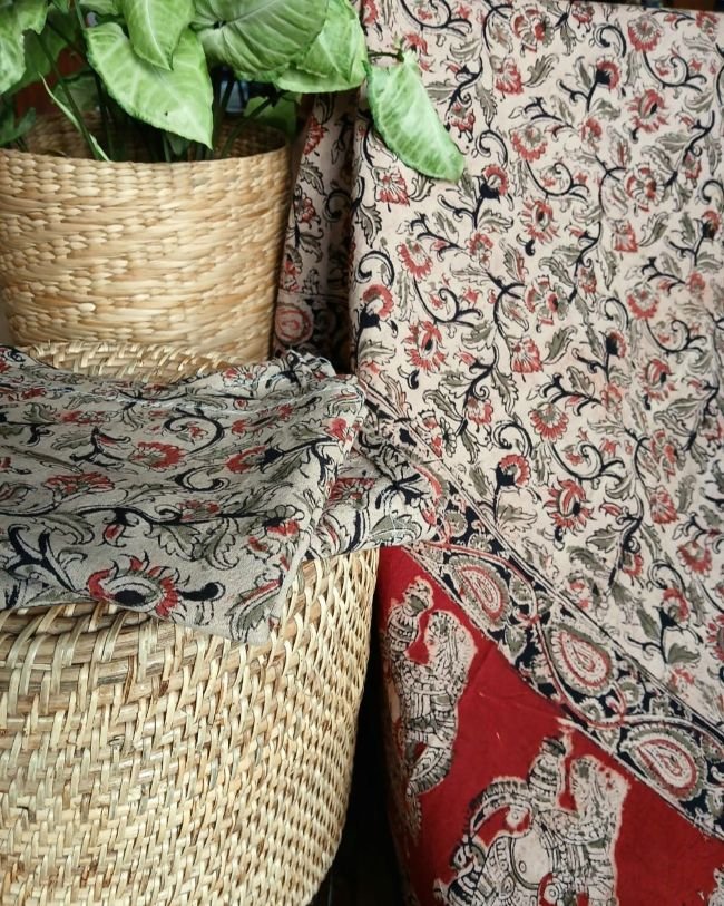Natural dyes Pedana Kalamkari Handblock bedsheet set. See more details below