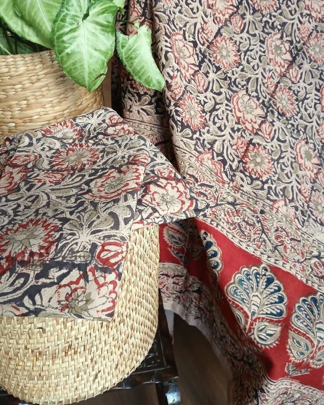 Natural dyes Pedana Kalamkari Handblock bedsheet set. See more details below