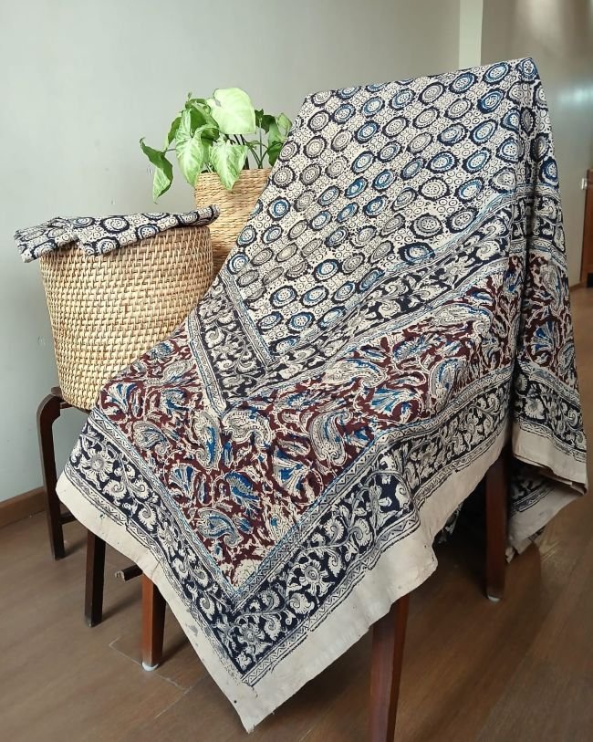 Natural dyes Pedana Kalamkari Handblock bedsheet set. See more details below