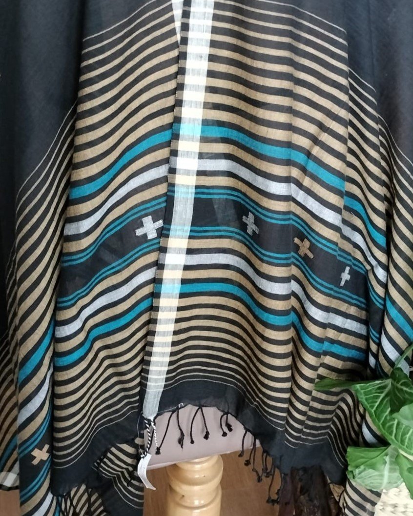 Needle Jamdani Cotton Stole – Black