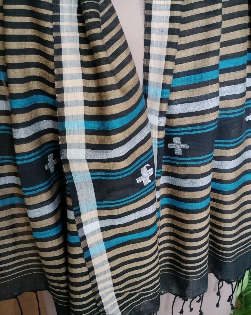 Soft cotton stole, handwoven in Bardhaman (West Bengal), with needle jamdani work done by hand. Great for gifting too!