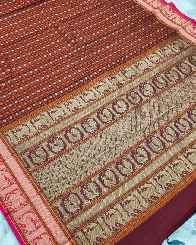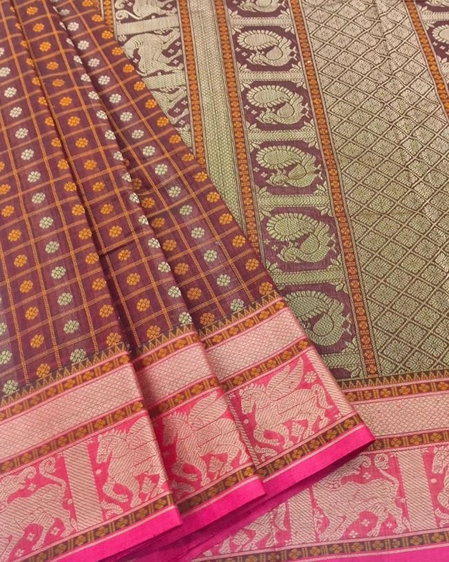 No Zari Ayiram Butta Kanchipuram handweave in cotton.