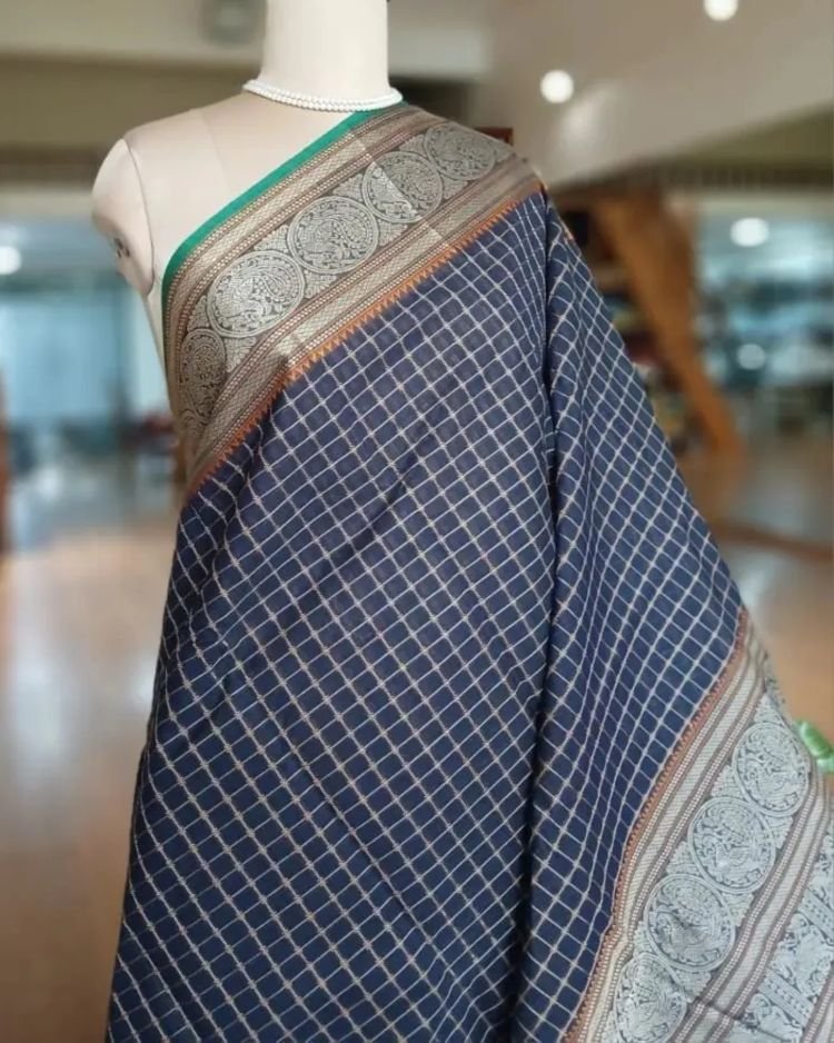 No Zari checks handweave in cotton, from Kanchipuram in Tamilnadu.