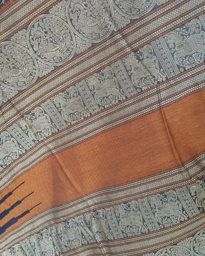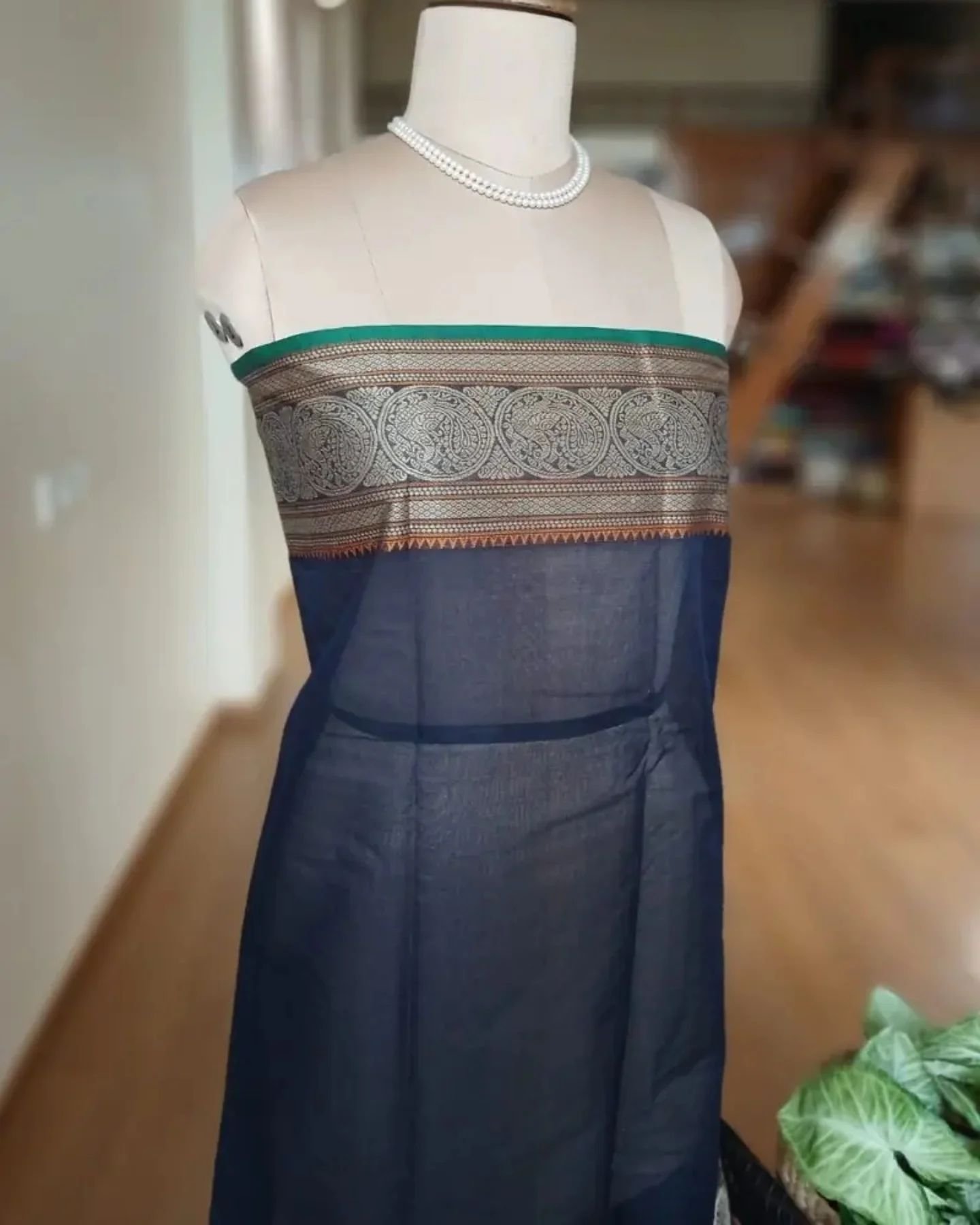 The mayil motif is present in the borders as well. The pink selvedge adds a beautiful finish.