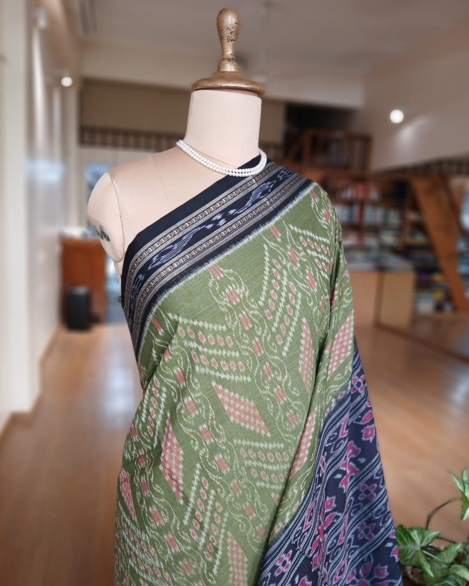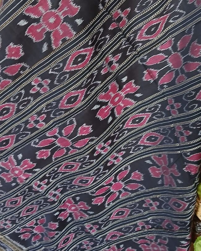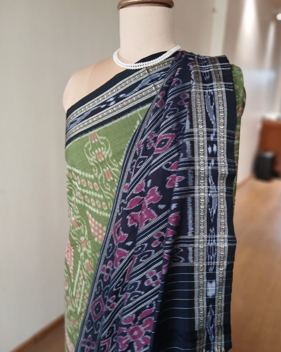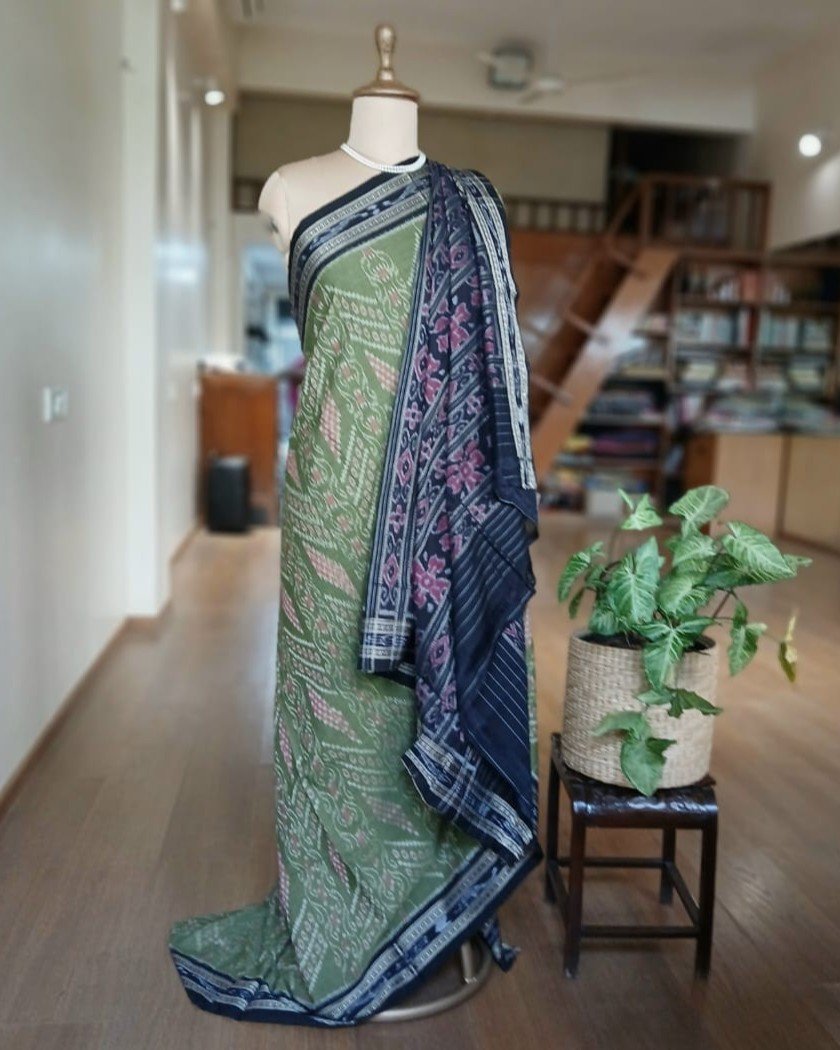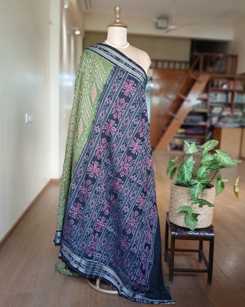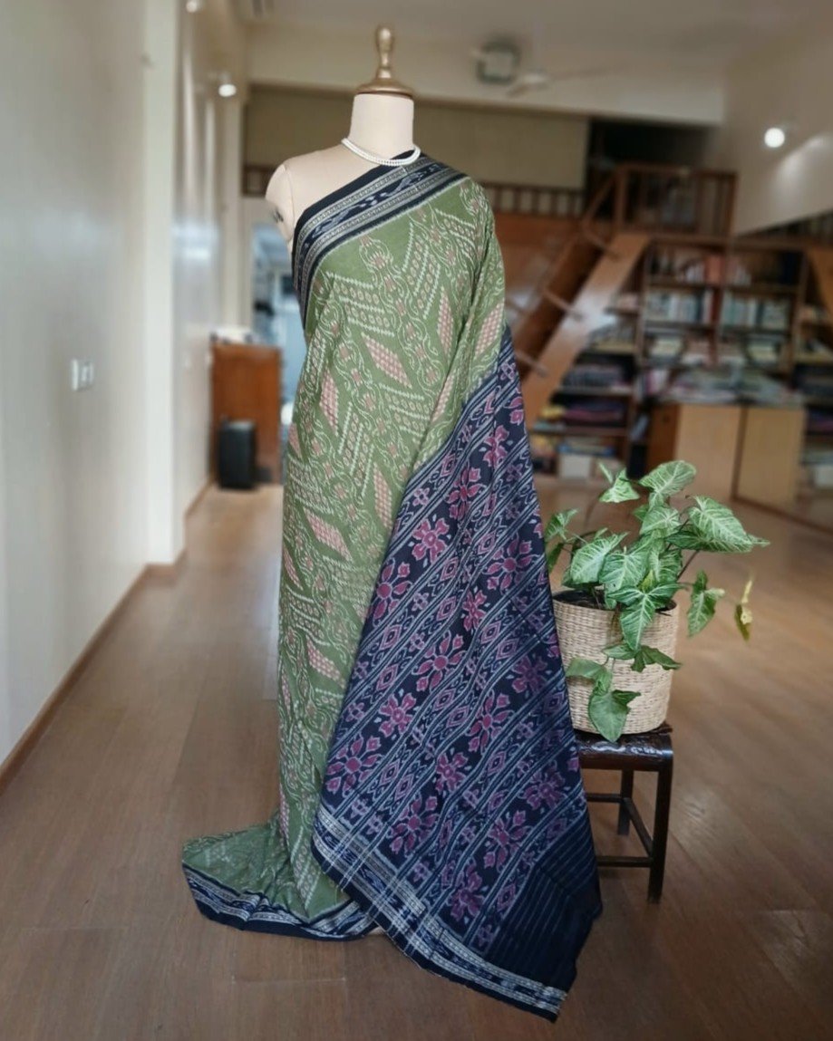 Nuapatna single Ikat Saree with Curvilinear Motifs. See more details below