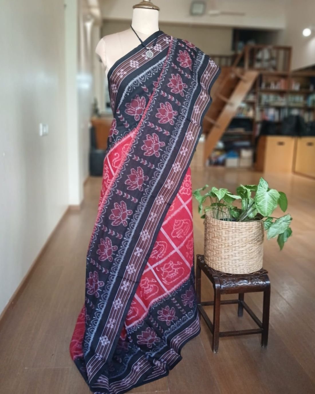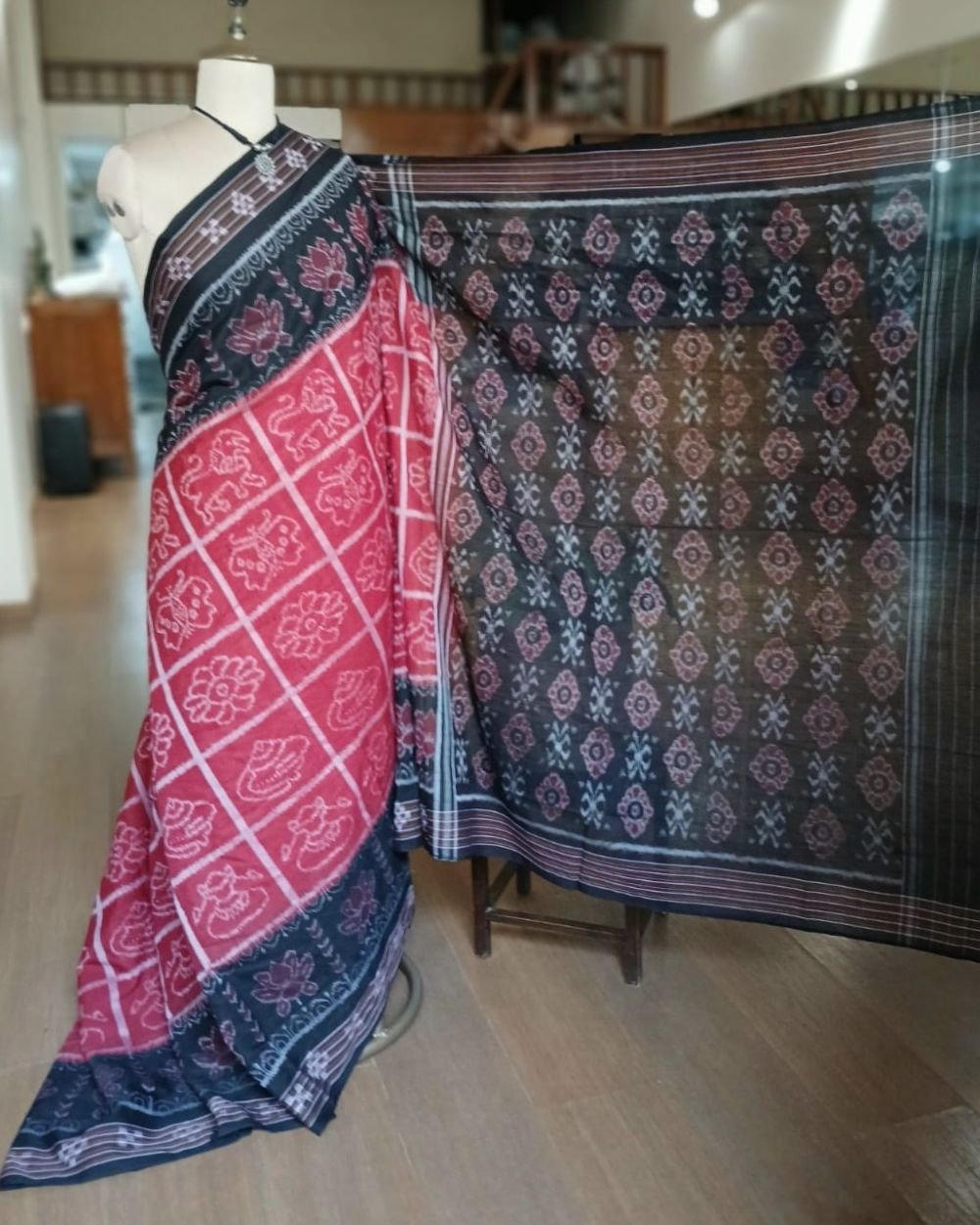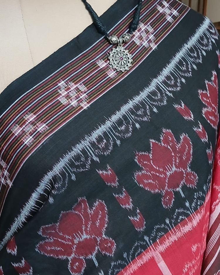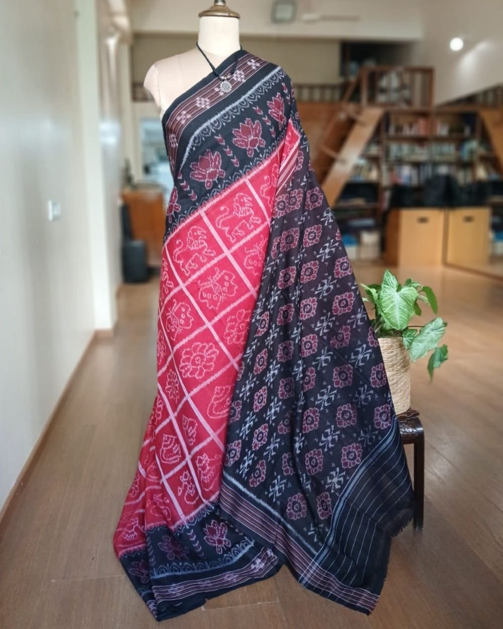 Nuapatna single ikat handloom saree with contrast palla and borders.