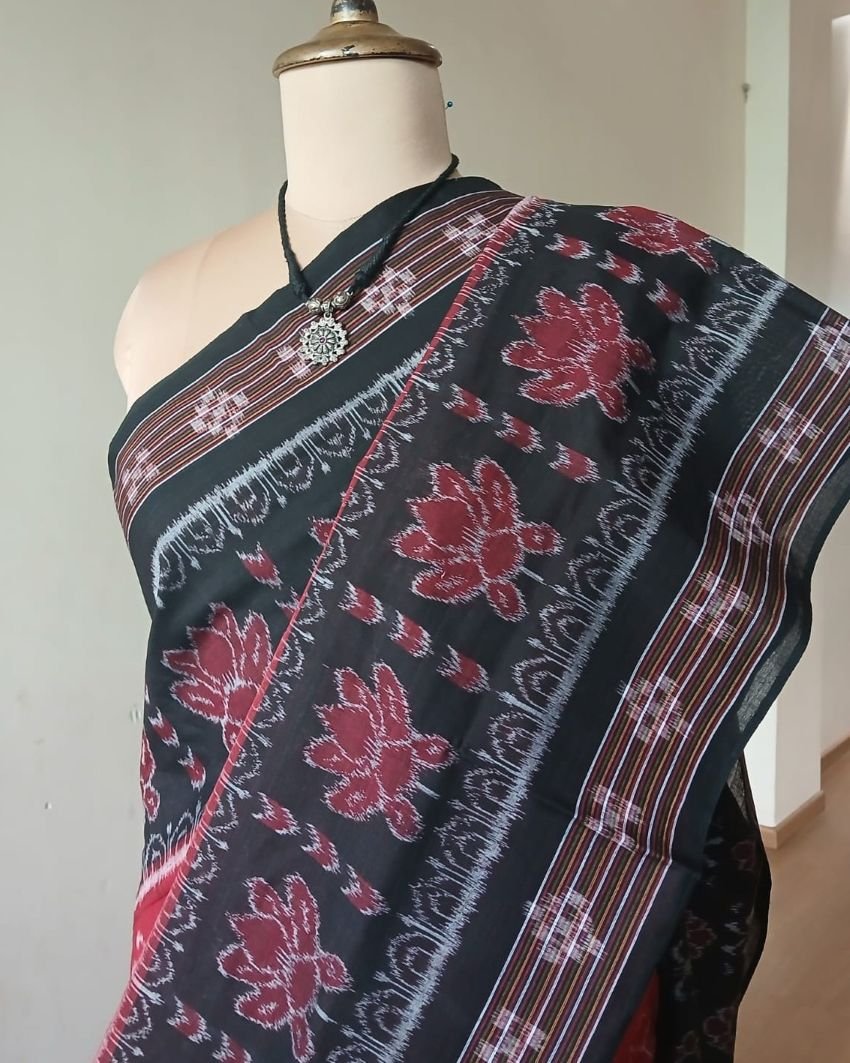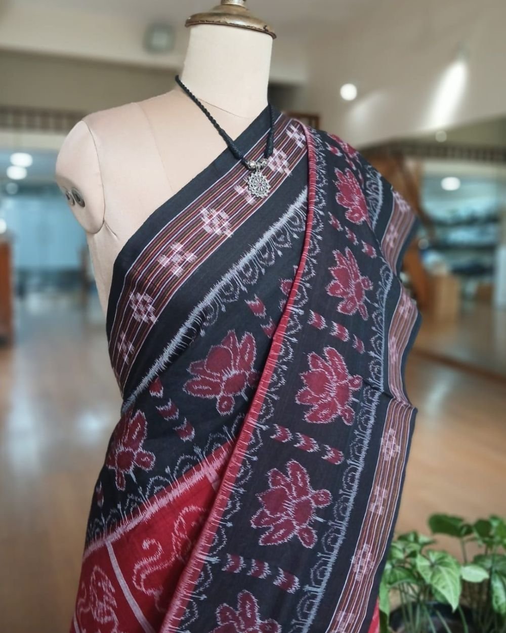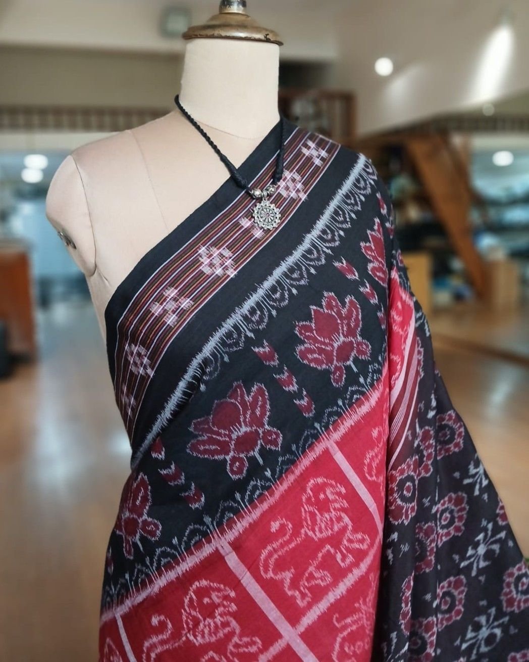 Nuapatna single ikat handloom saree with contrast palla and borders.