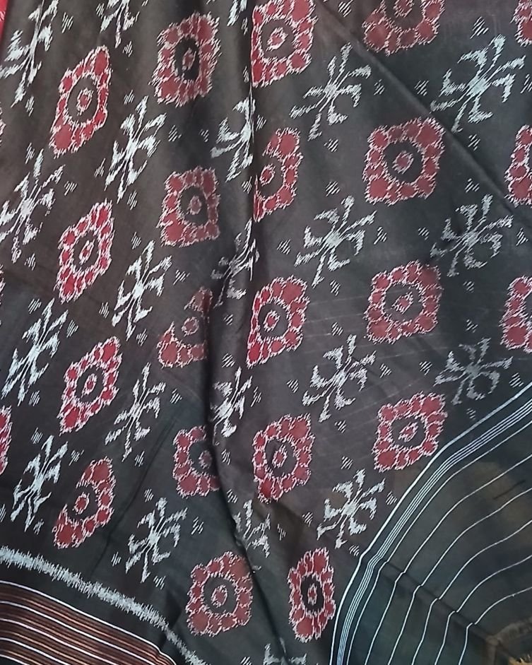 Nuapatna single ikat handloom saree with contrast palla and borders. See more details below
