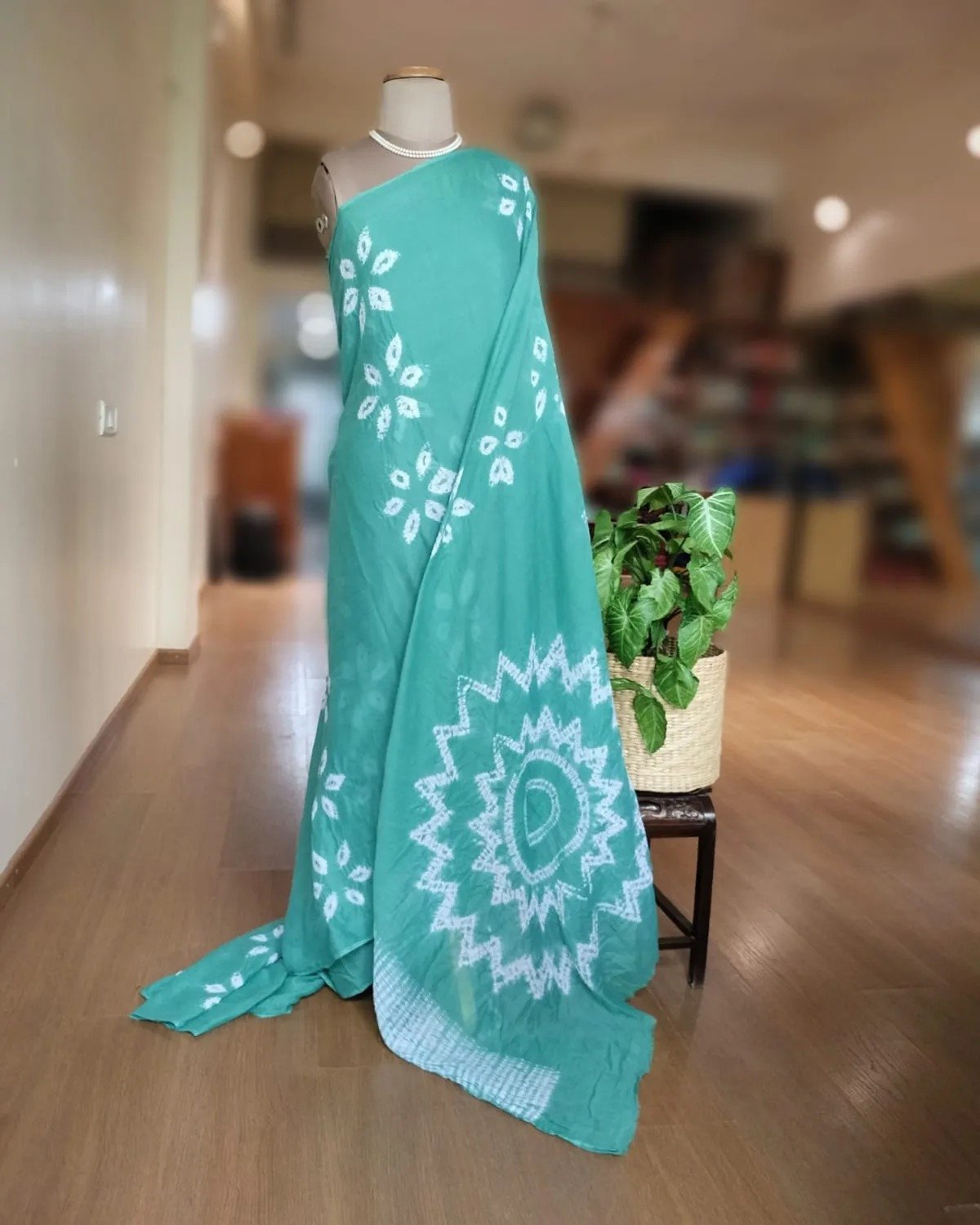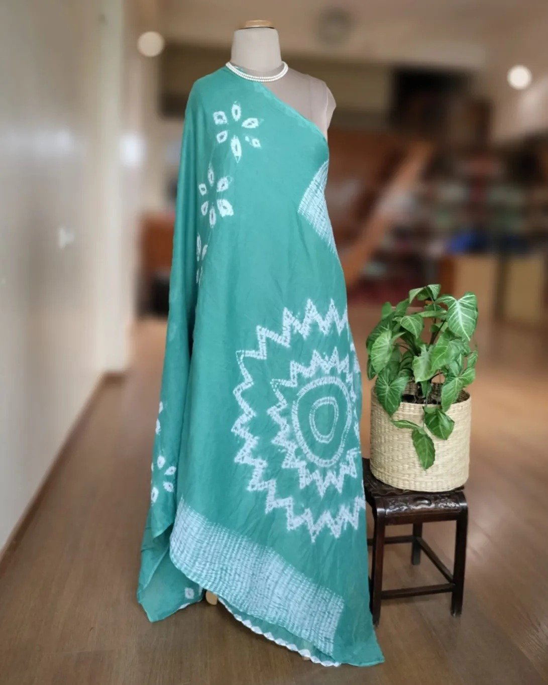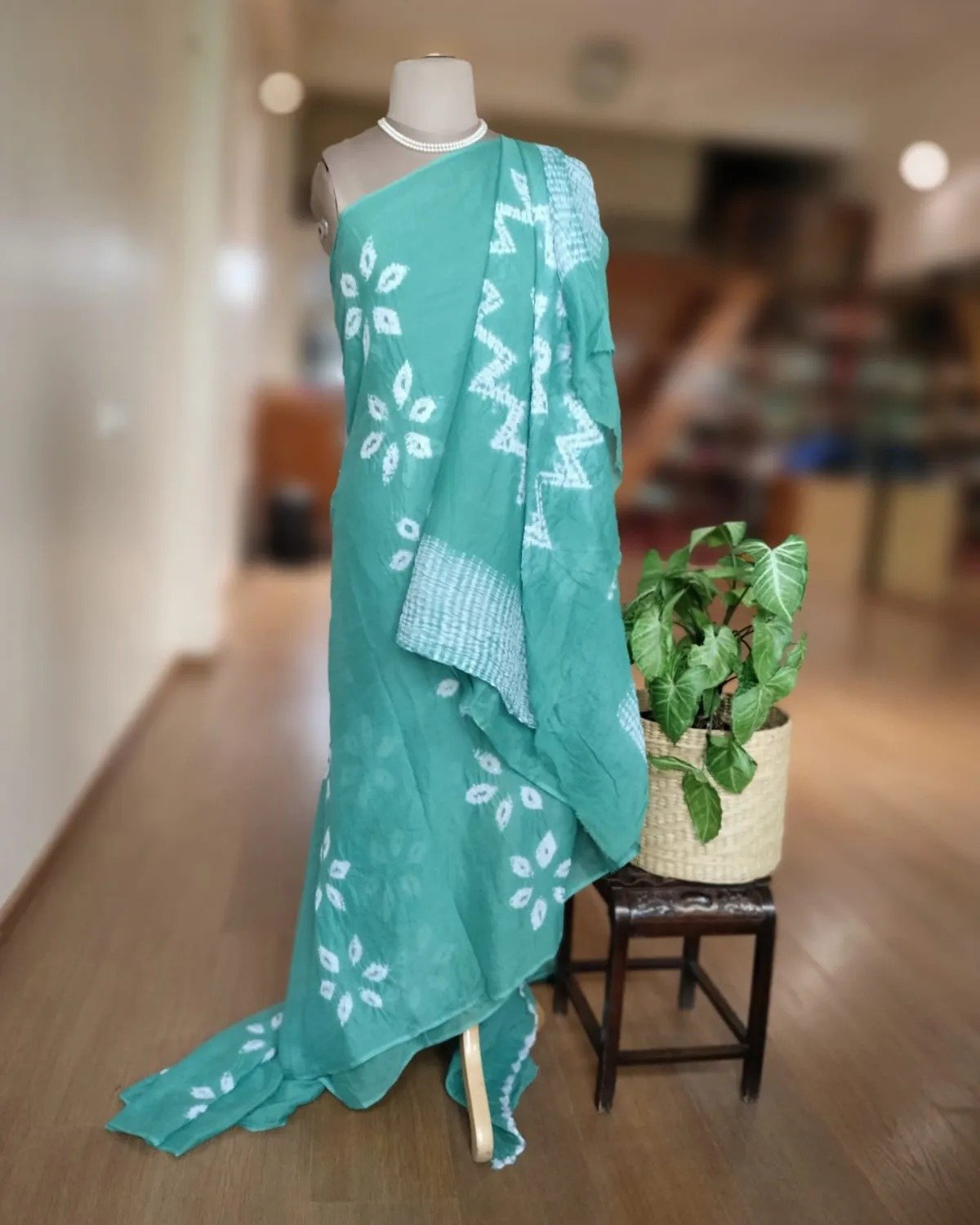 Hand Shibori on Mul Cotton Saree using the Nui Shibori technique