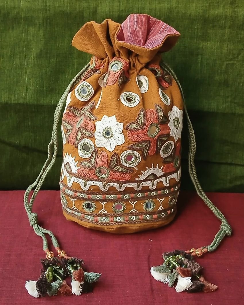 Drawstring Paako Hand Embroidered potli bag from Kutch. See More Details Below.