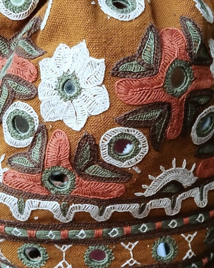 This type of paako embroidery is done by the Sameja and Marwada community.