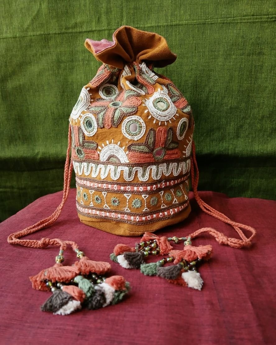 Drawstring Paako Hand Embroidered potli bag from Kutch. See More Details Below.