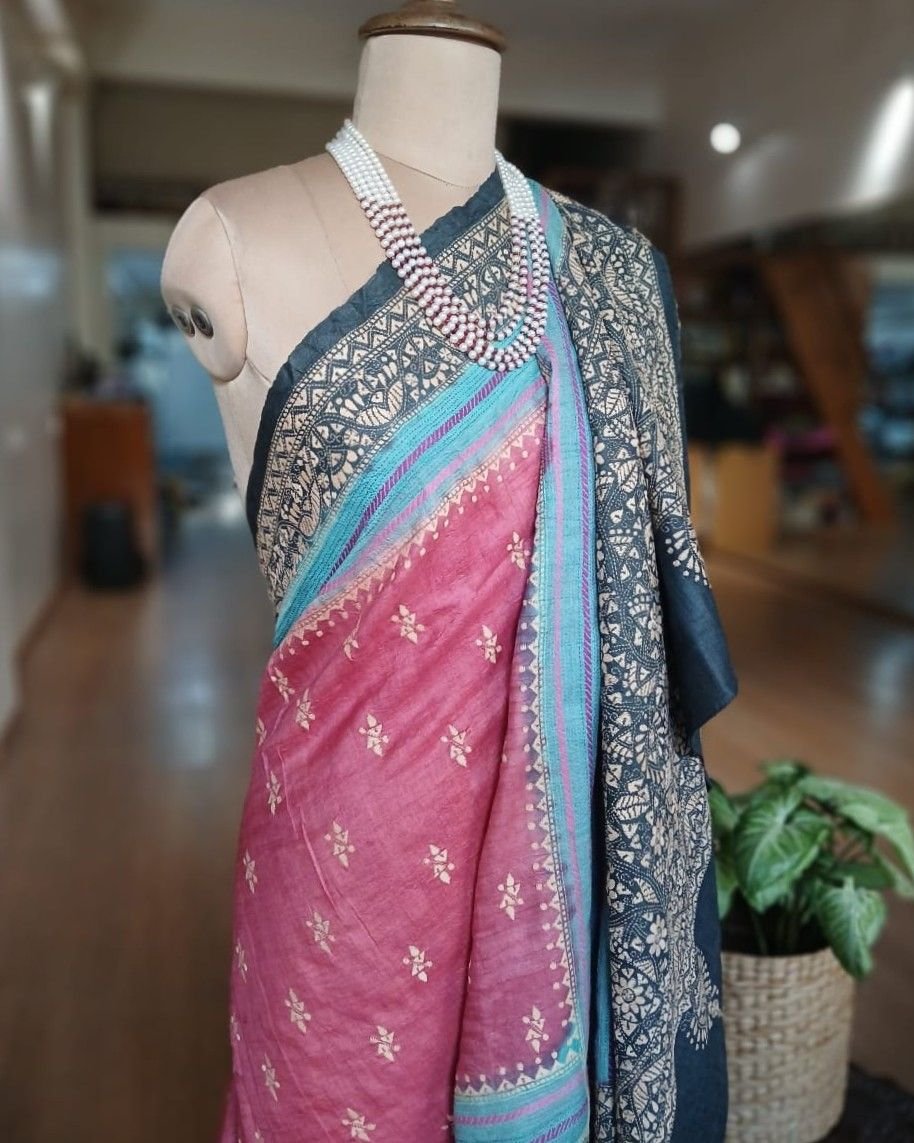 Collector’s Delight – PadmaShree Takdira Begum’s Tussar Silk Kantha Saree with contrast borders and pallas.