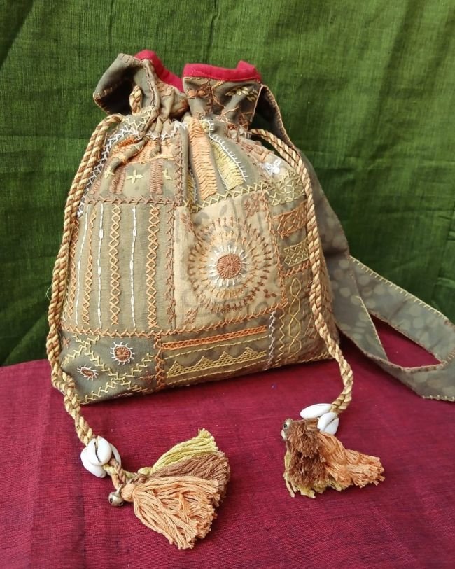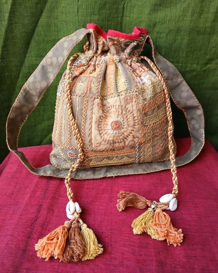 Patchwork Embroidered Drawstring Bag – (PEDB0005)