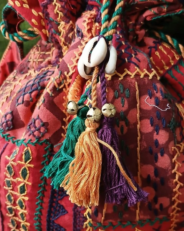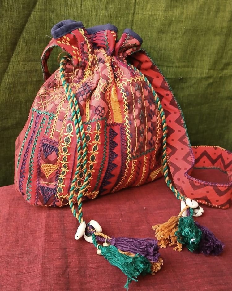 Patchwork Embroidered Drawstring Bag – (PEDB0007)