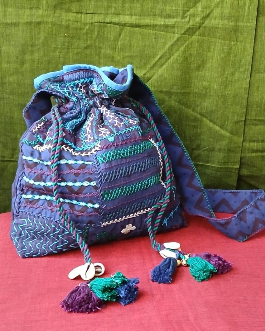 Patchwork Embroidered Drawstring Bag – (PEDB0018)