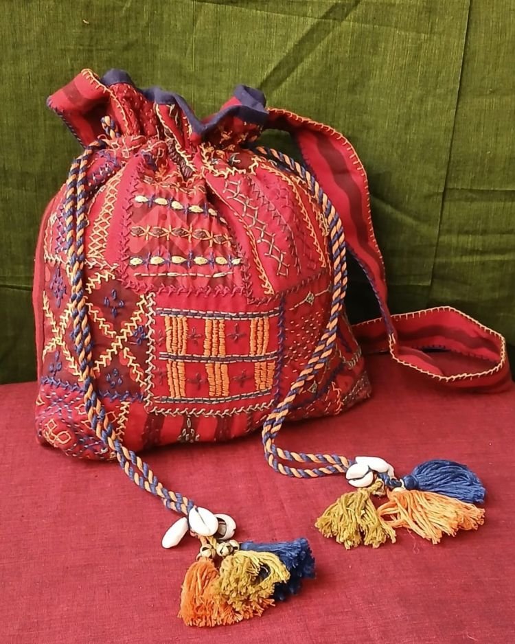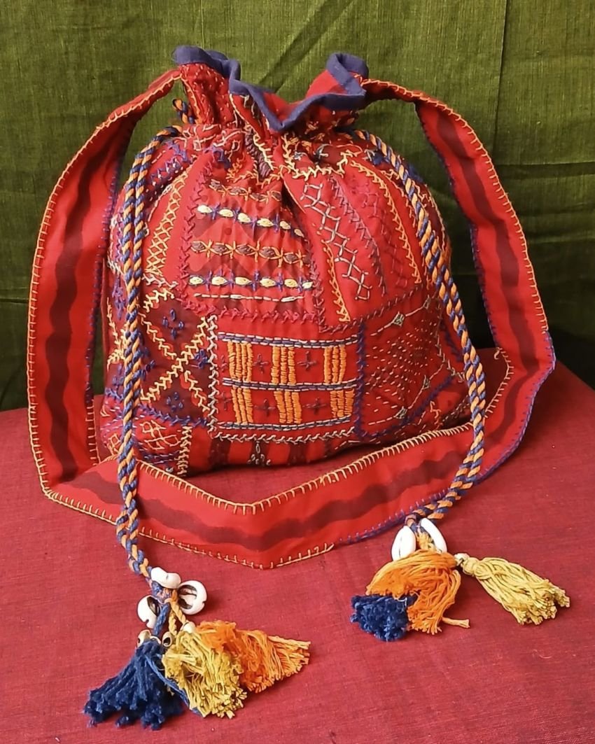 Patchwork Embroidered Drawstring Bag – (PEDB0021)