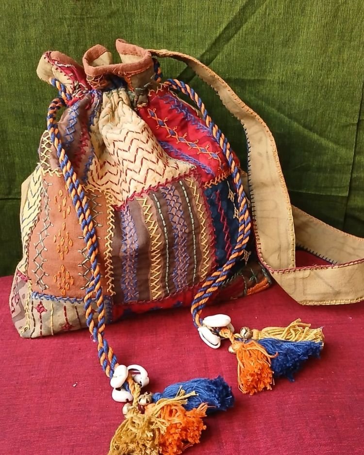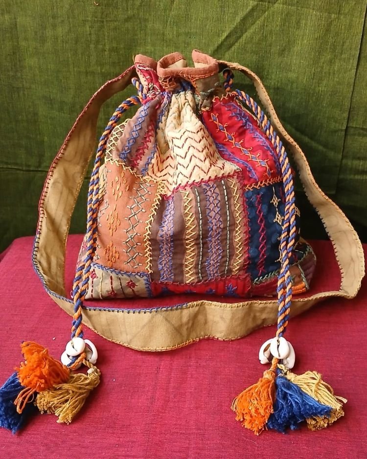 Patchwork Embroidered Drawstring Bag – (PEDB0025)