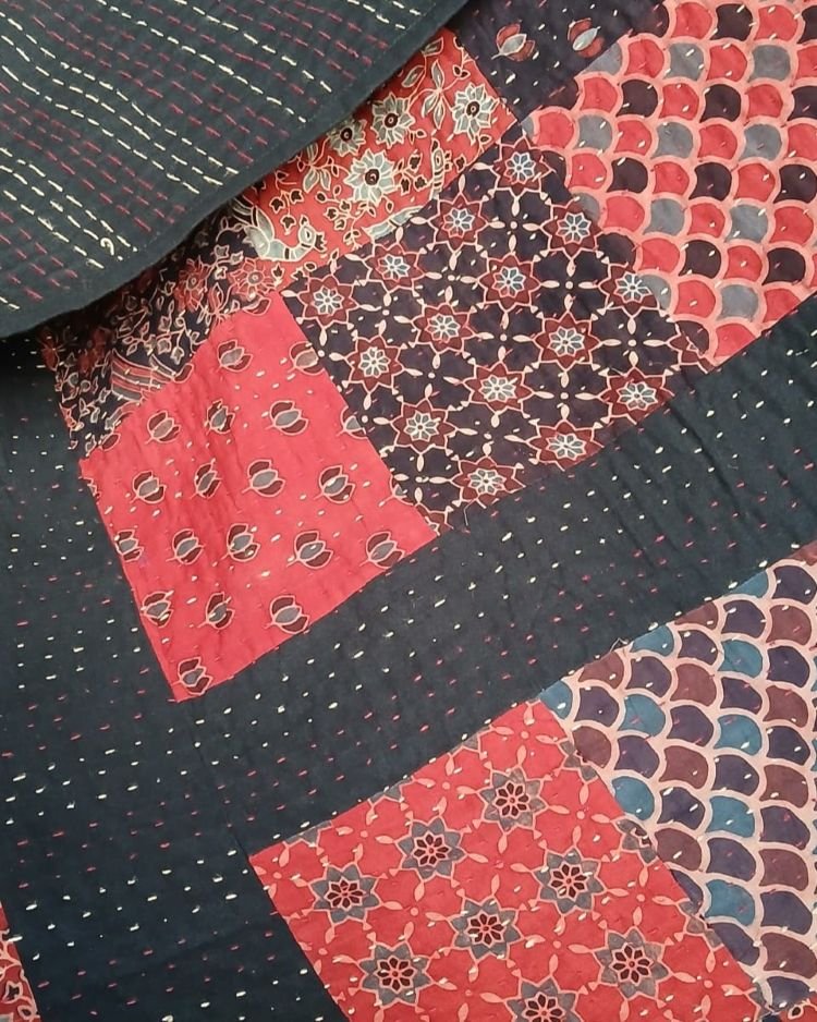 Patchwork Two-Layer Ajrakh Quilt (Godhri). Can be used as a blanket as well.