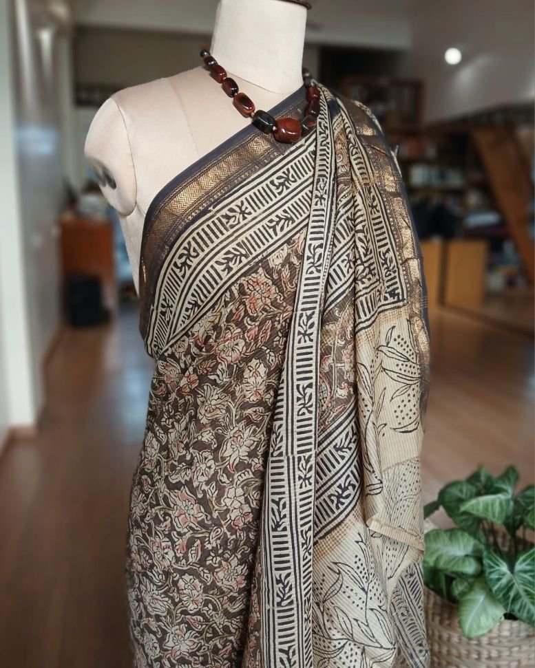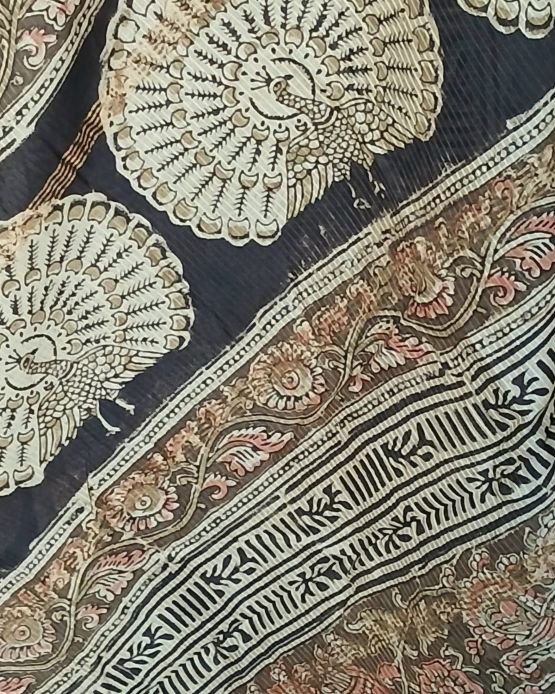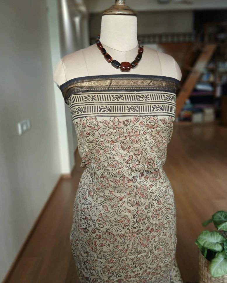 Pedana Silk-Cotton Kalamkari sarees, hand block printed in the Krishna District of Andhra Pradesh.