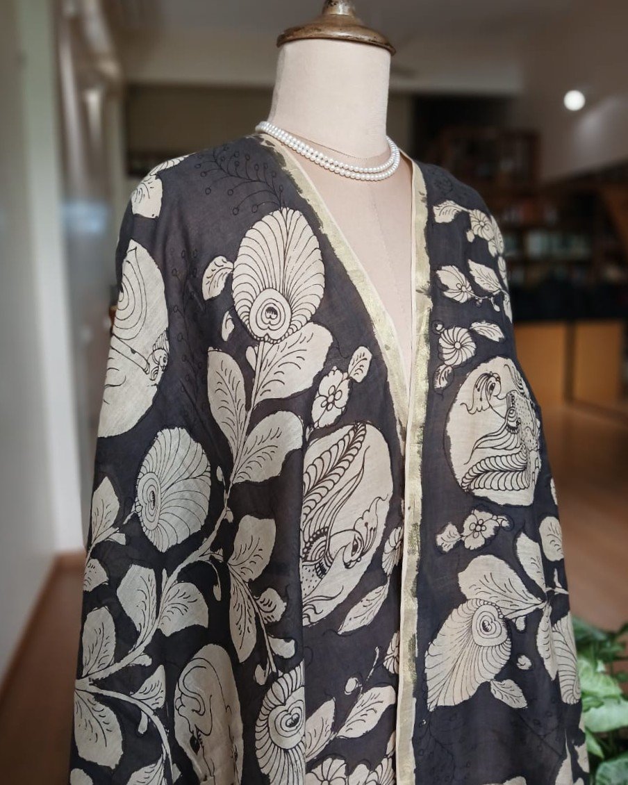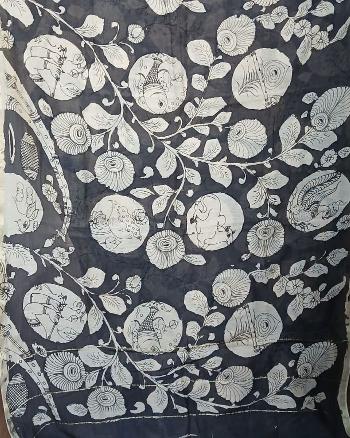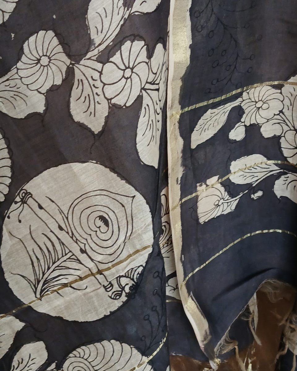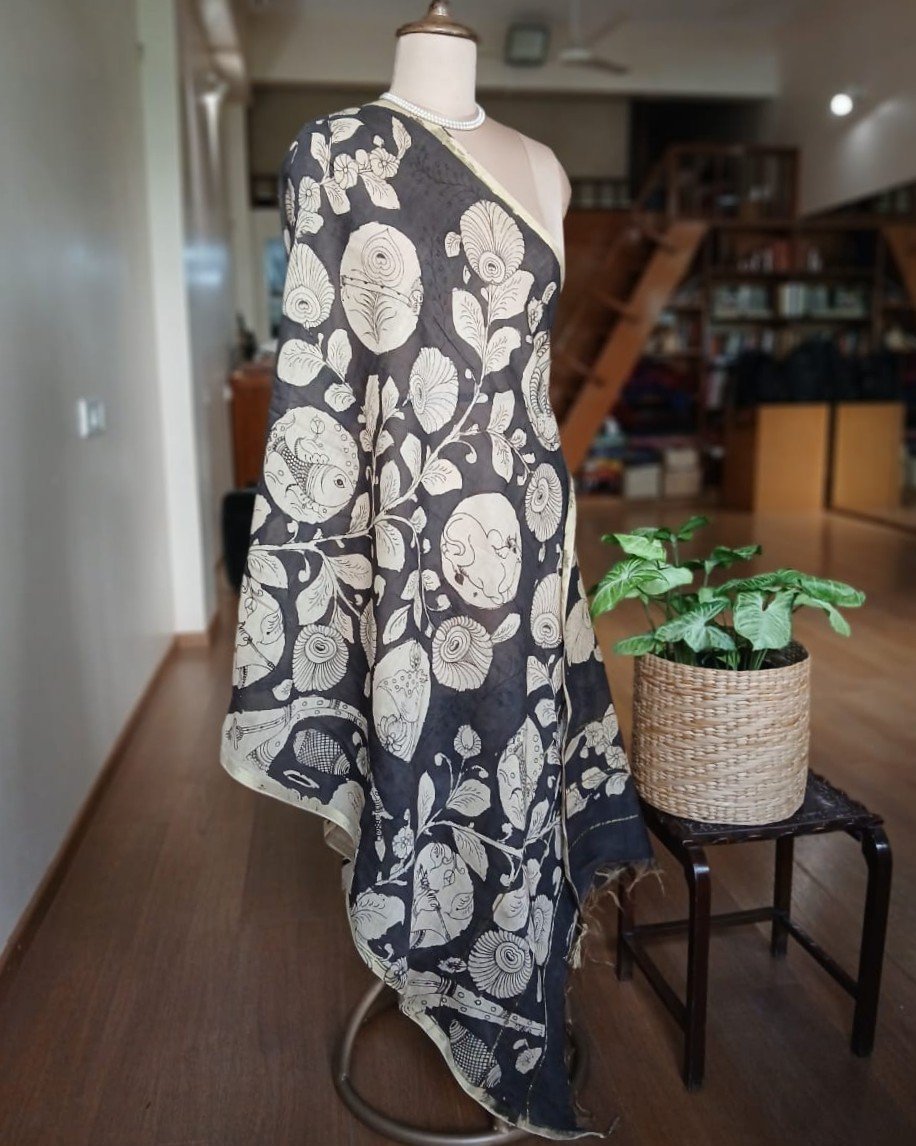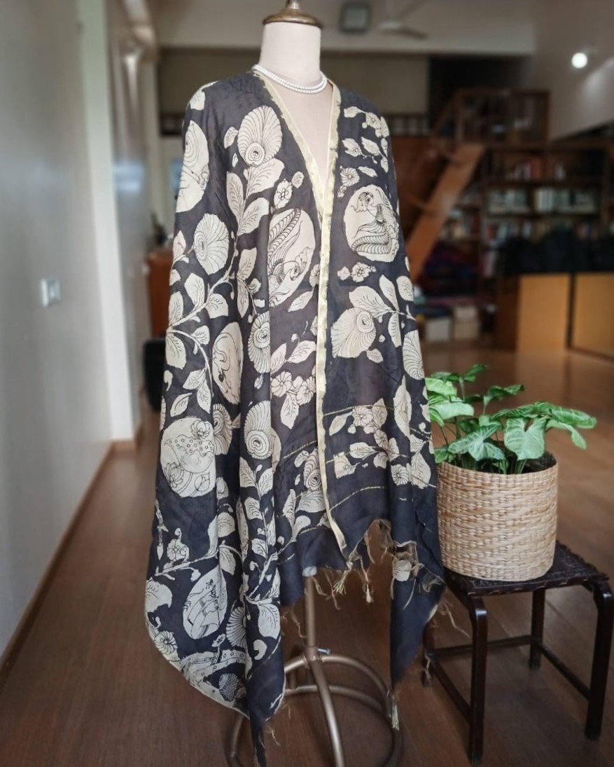 Pen Kalamkari Dupatta from Kalahasti. See more details below.