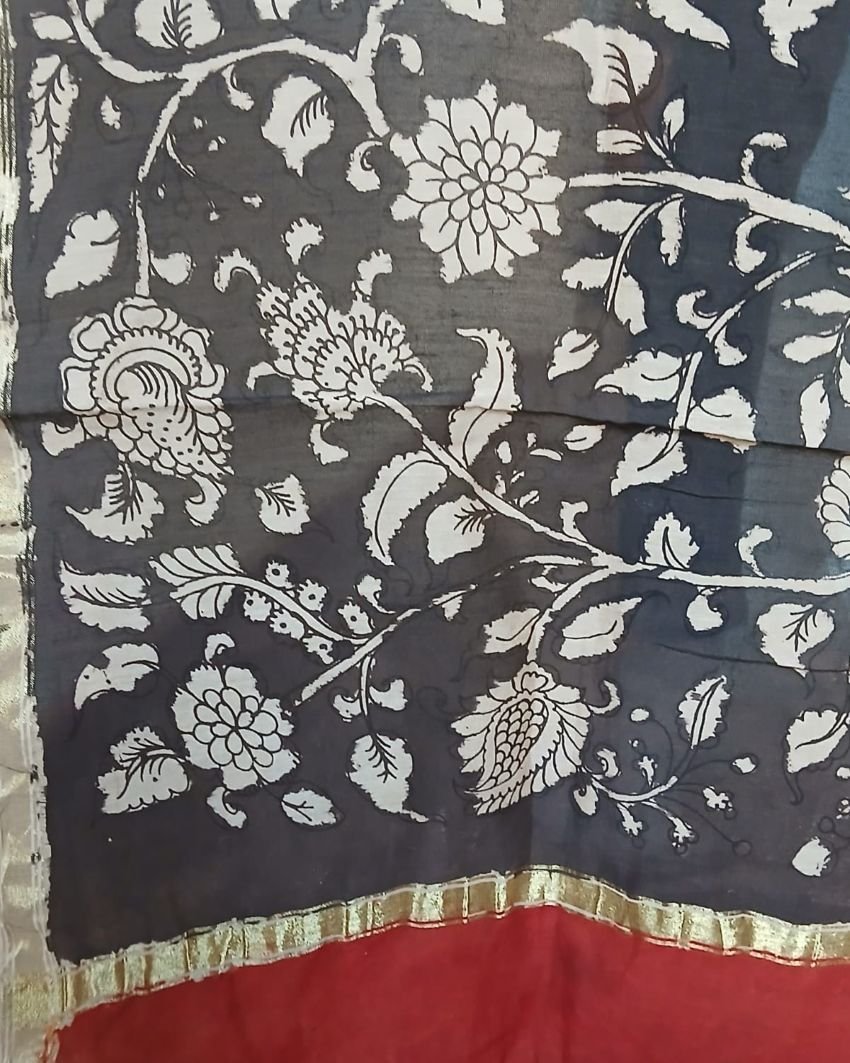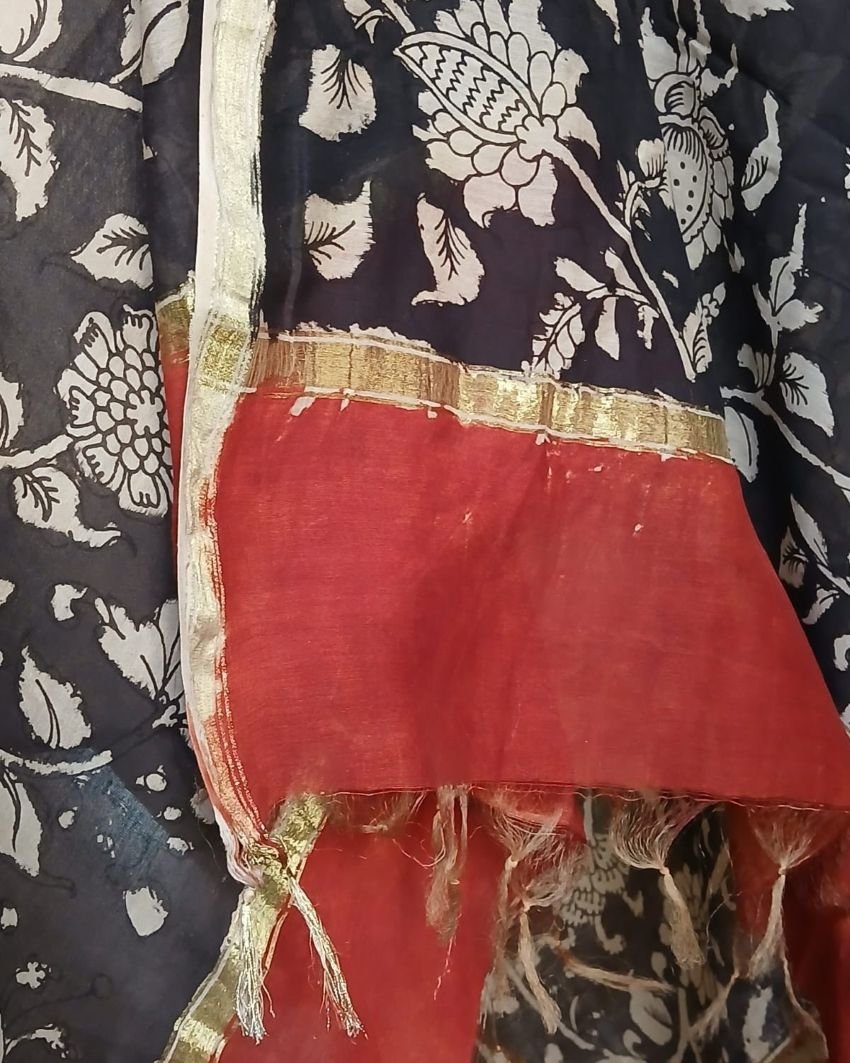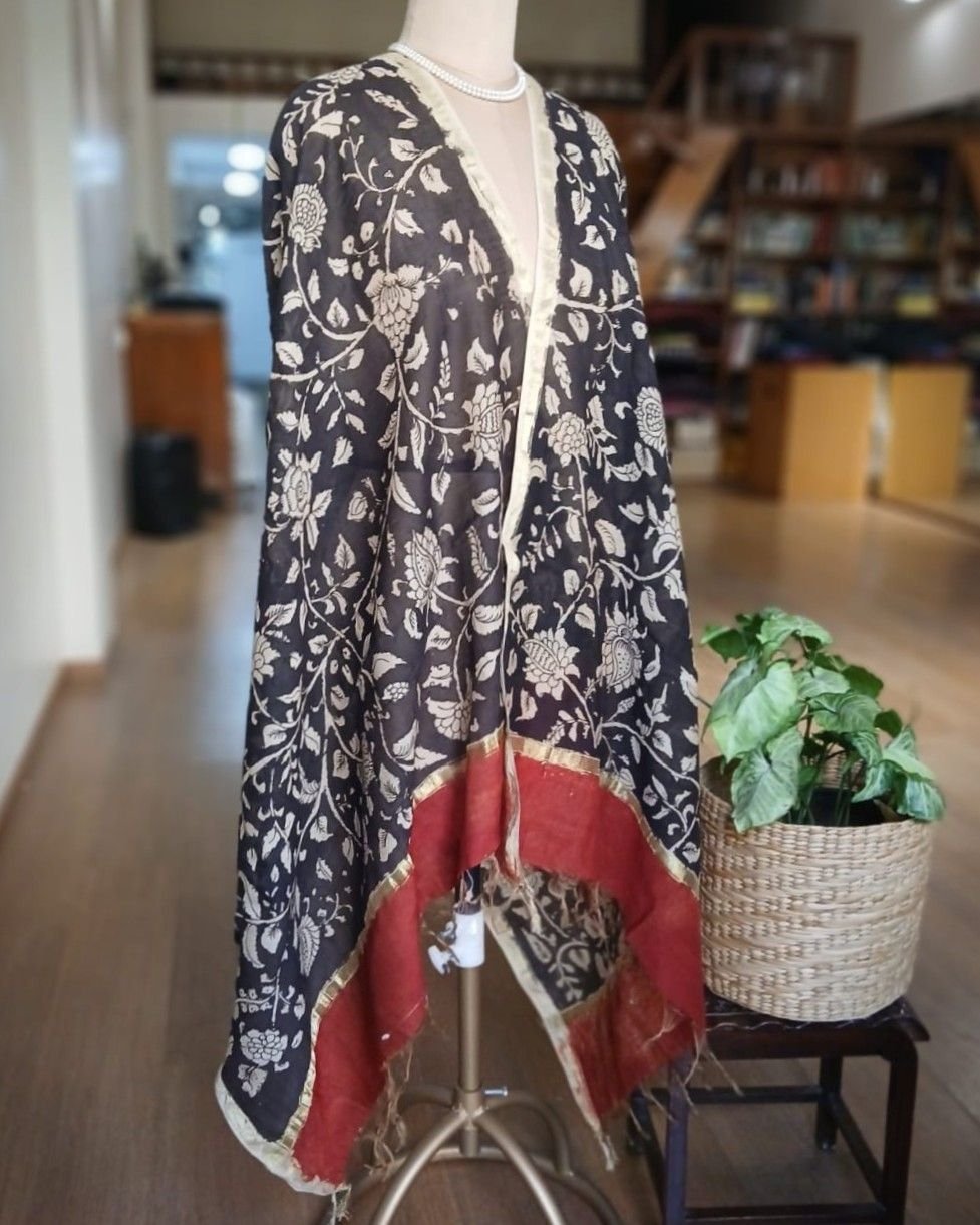 Pen Kalamkari Dupatta from Kalahasti. See more details below.
