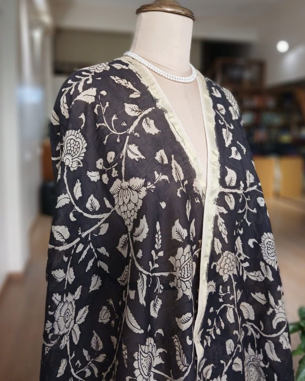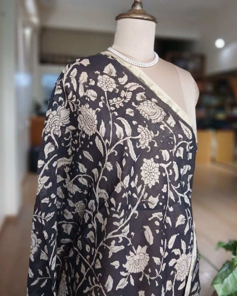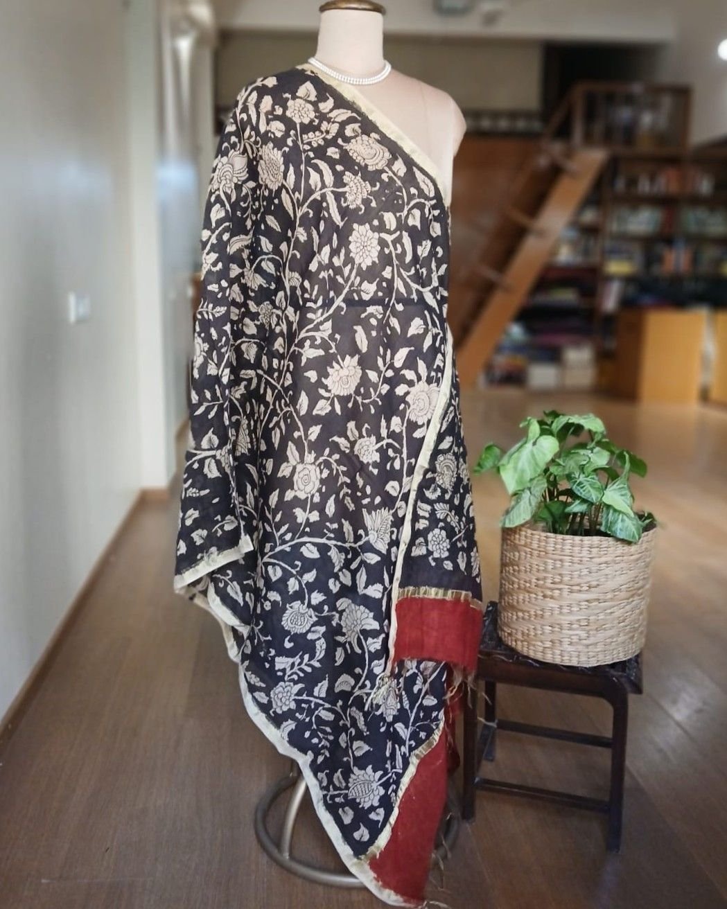 Pen Kalamkari Dupatta from Kalahasti. See more details below.